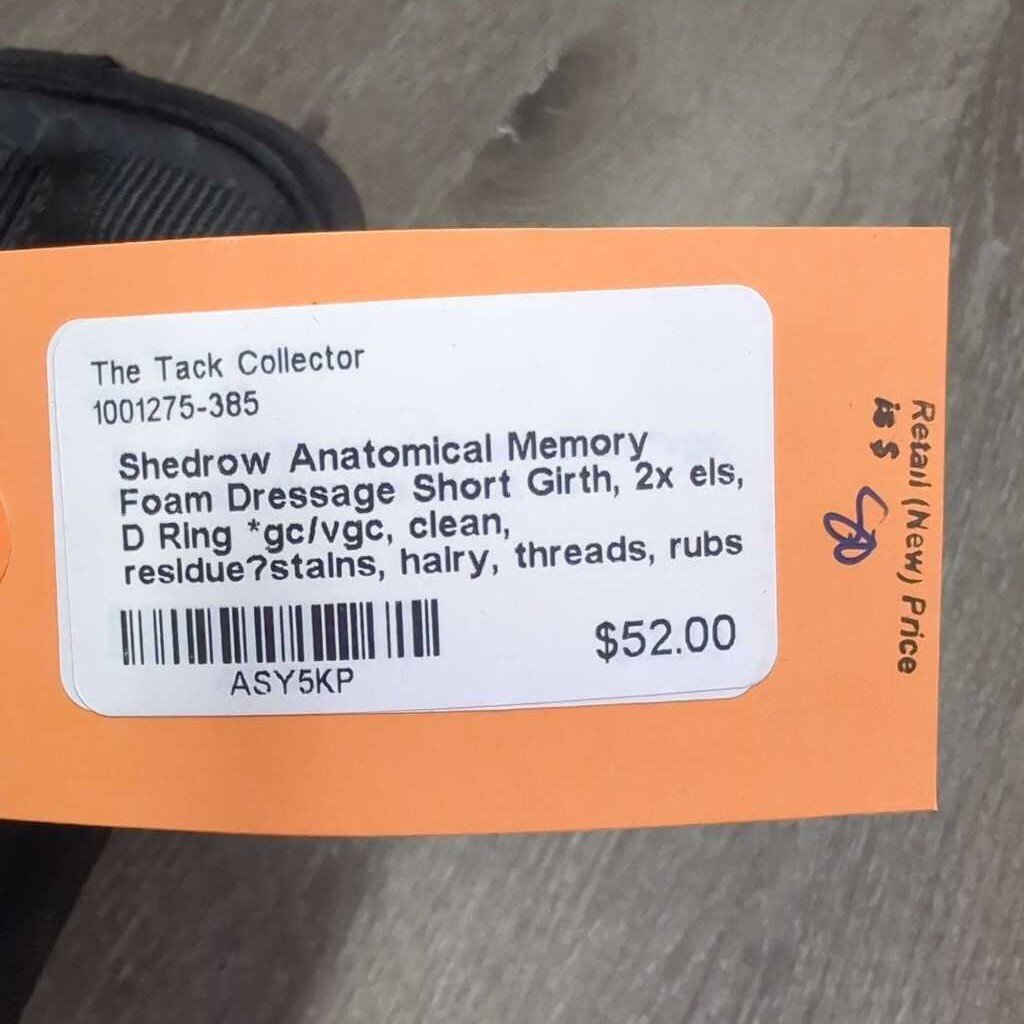 Anatomical Memory Foam Dressage Short Girth, 2x els, D Ring *gc/vgc, clean, residue?stains, hairy, threads, rubs