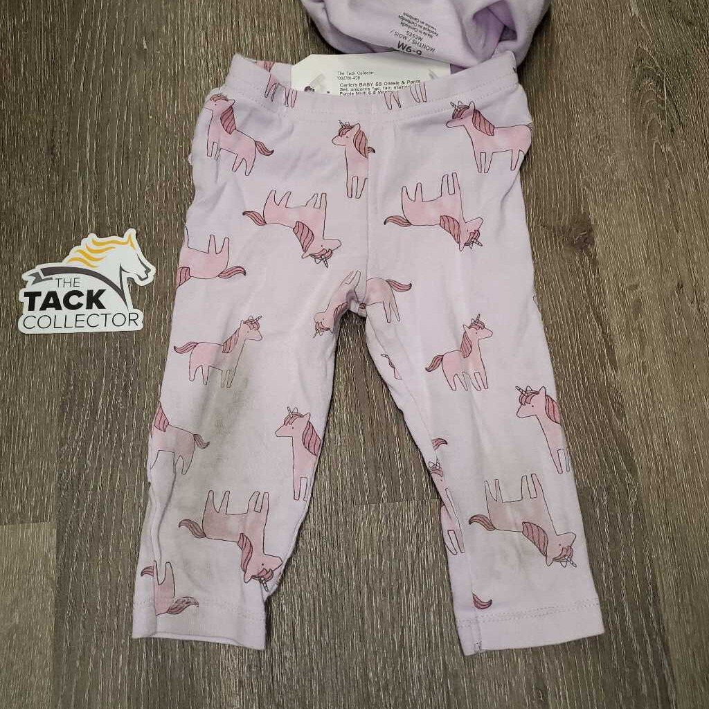 BABY SS Onesie & Pants Set, unicorns *gc, fair, stained, hair