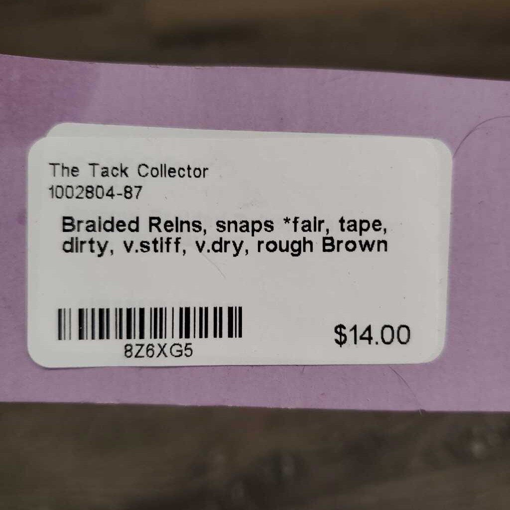 Braided Reins, snaps *fair, tape, dirty, v.stiff, v.dry, rough