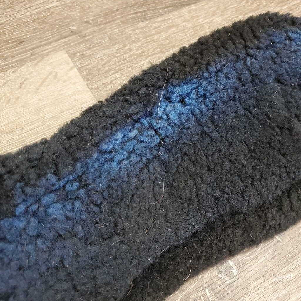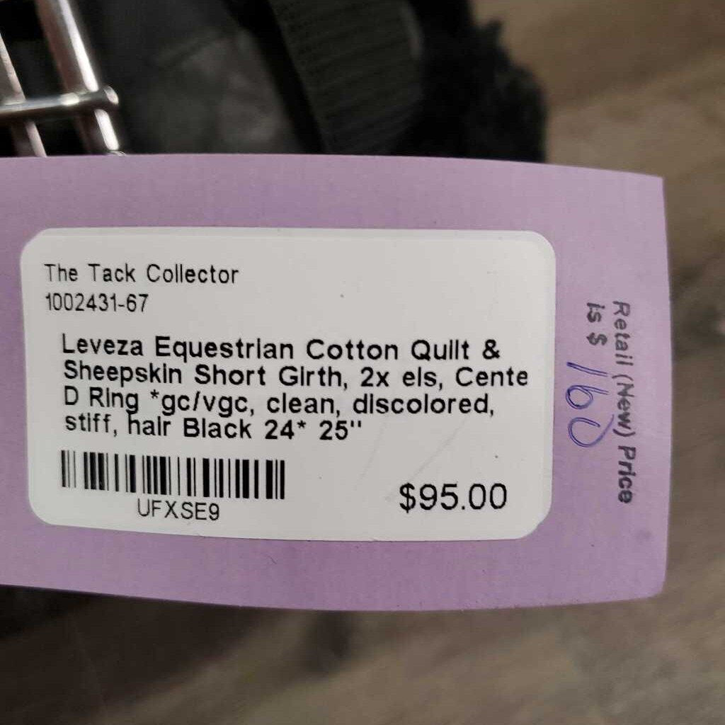Cotton Quilt & Sheepskin Short Girth, 2x els, Center D Ring *gc/vgc, clean, discolored, stiff, hair