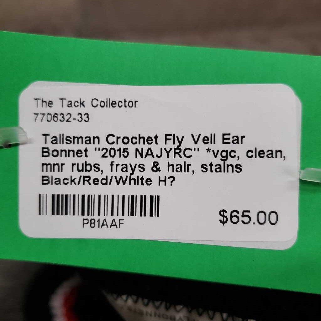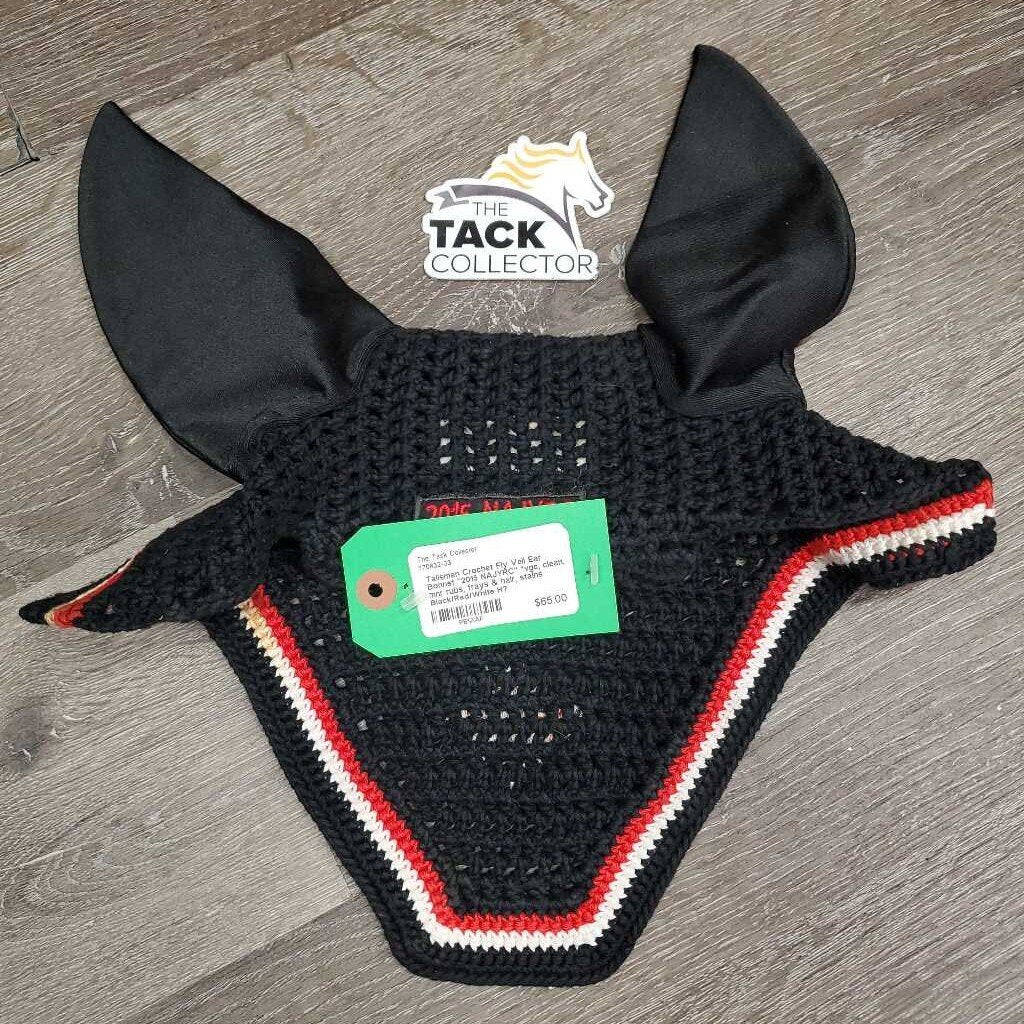 Crochet Fly Veil Ear Bonnet "2015 NAJYRC" *vgc, clean, mnr rubs, frays & hair, stains