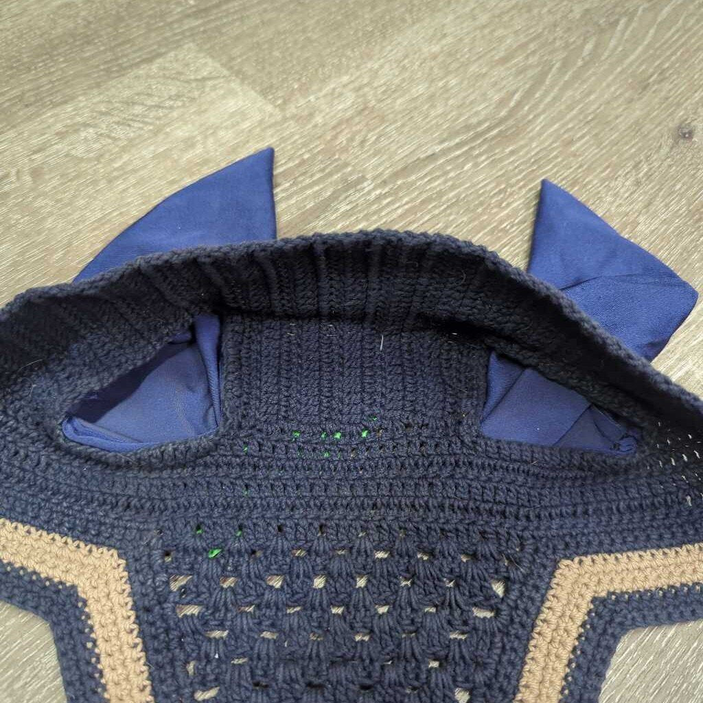 Crochet Fly Veil Ear Bonnet *gc, shrunk, faded, curled, snag/pull