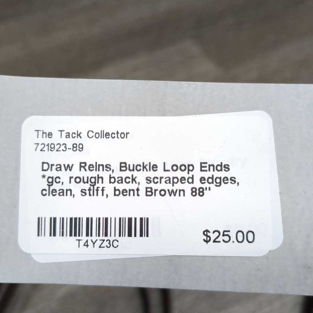 Draw Reins, Buckle Loop Ends *gc, rough back, scraped edges, clean, stiff, bent