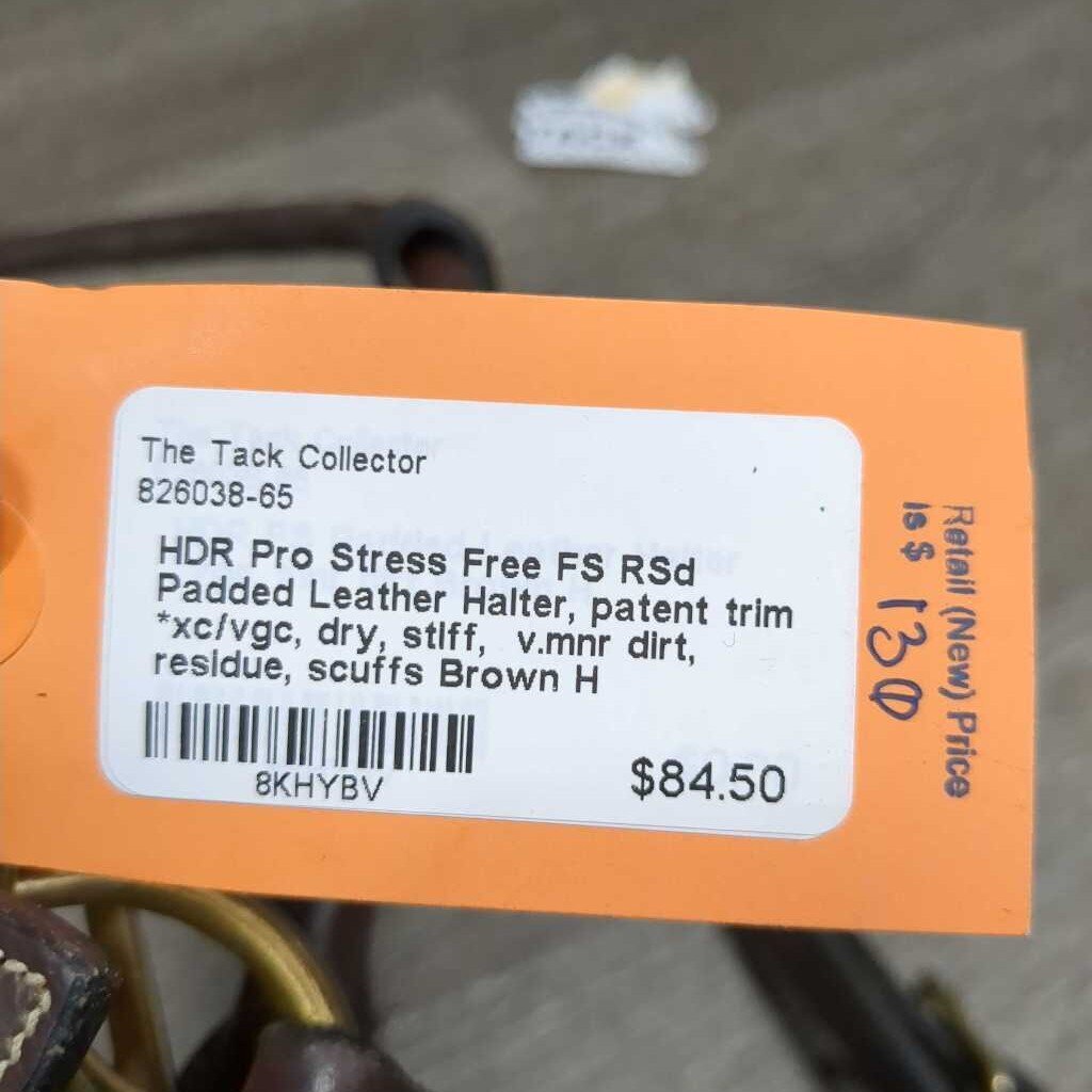 FS RSd Padded Leather Halter, patent trim *xc/vgc, dry, stiff, v.mnr dirt, residue, scuffs