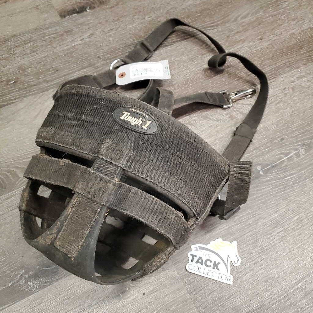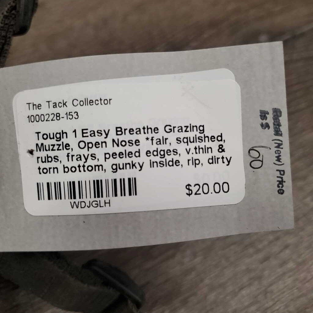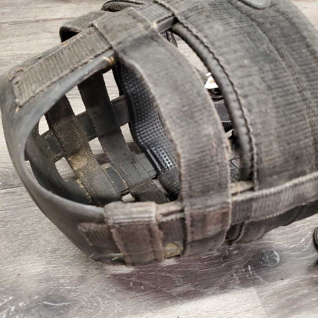 Grazing Muzzle, Open Nose *fair, squished, rubs, frays, peeled edges, v.thin & torn bottom, gunky inside, rip, dirty
