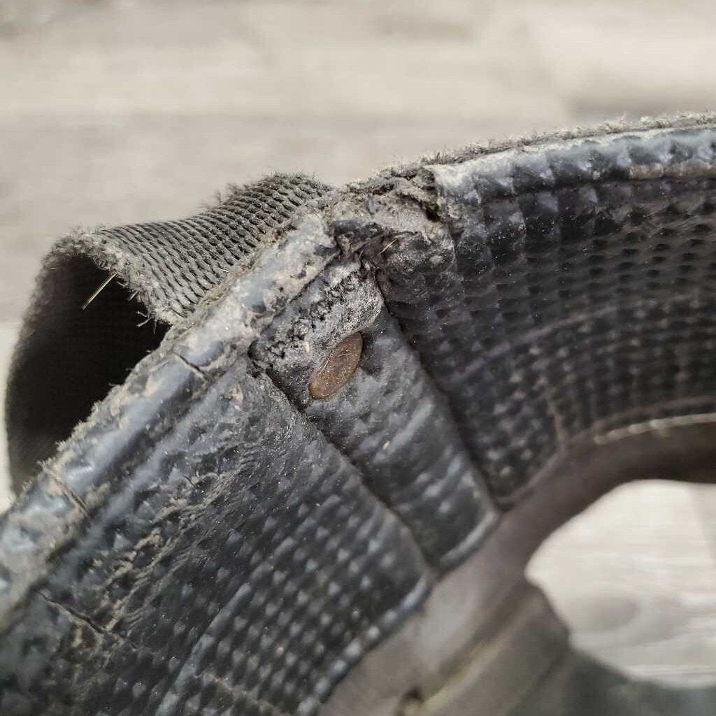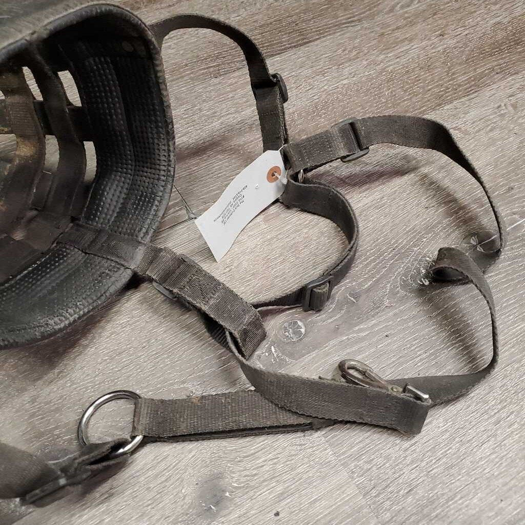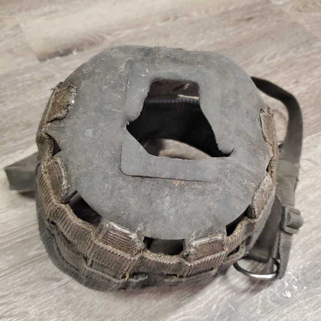 Grazing Muzzle, Open Nose *fair, squished, rubs, frays, peeled edges, v.thin & torn bottom, gunky inside, rip, dirty