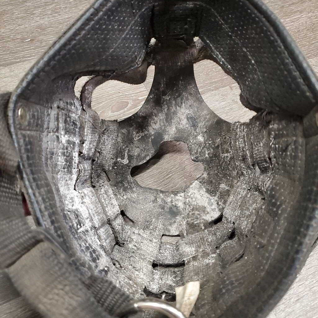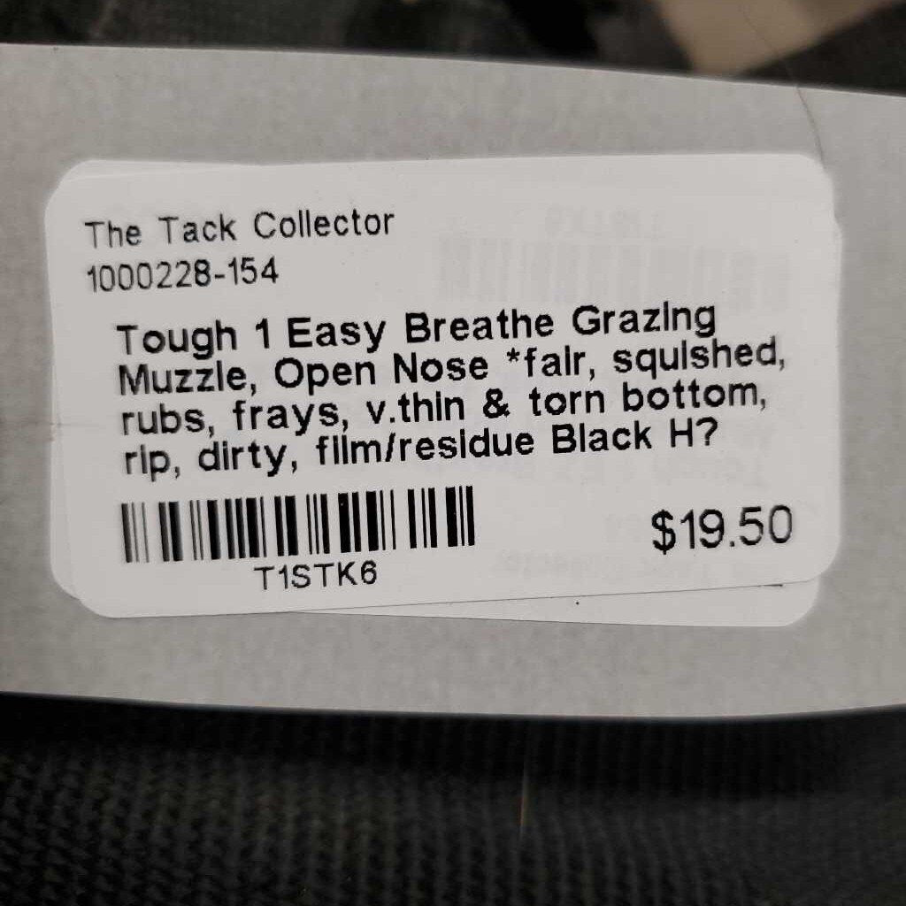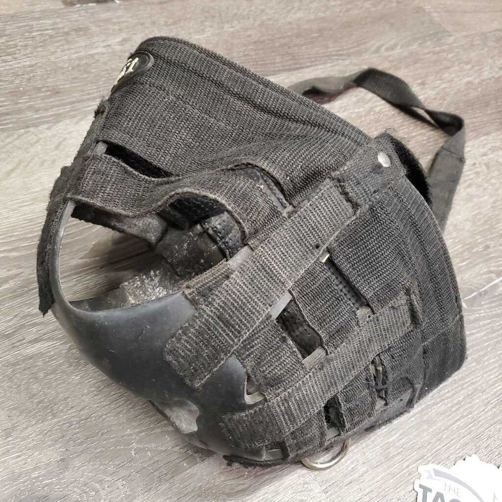 Grazing Muzzle, Open Nose *fair, squished, rubs, frays, v.thin & torn bottom, rip, dirty, film/residue