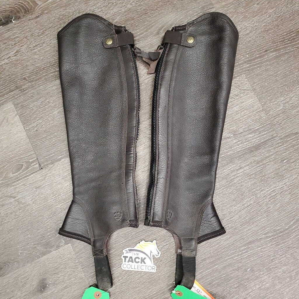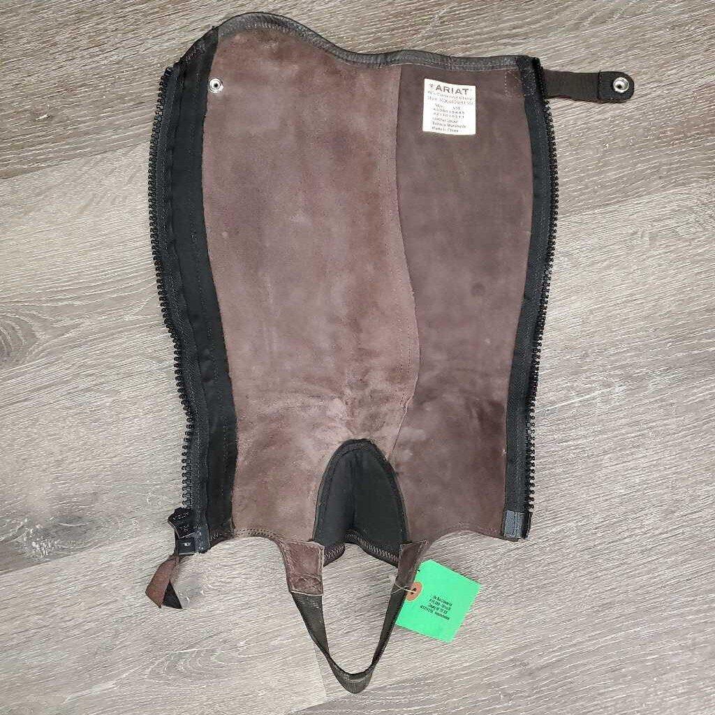 Hvy Leather Half Chaps, Back Zips *vgc/xc, clean, mnr rubs & dirt