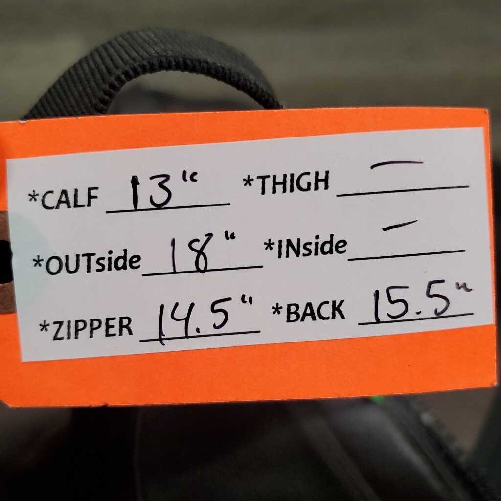 Calf 13", Outside 18", Zipper 14.5", Back 15.5" Secure in the saddle with an elegant profile and exceptional comfort. Very supple leather, unlined construction, and a full-length stretch panel create a perfect fit. The Spanish cut topline finishes a classic, flattering silhouette. These unisex chaps paired with Ariat paddock boots will give the look of tall boots and comfort of half chaps.