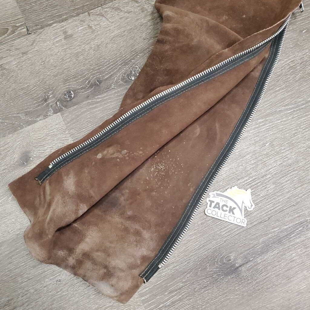 Hvy Suede Full Chaps, zips *gc, dirty, rubs, older, stains, stiff, faded