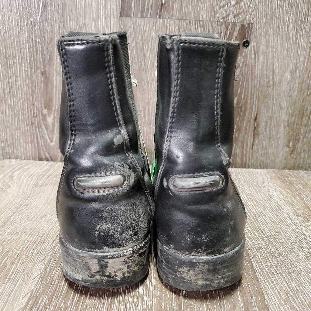 JUNIORS Paddock Boots, zips *fair, v.dirty, holey inner heels, peeled, cracks, older, frayed edges