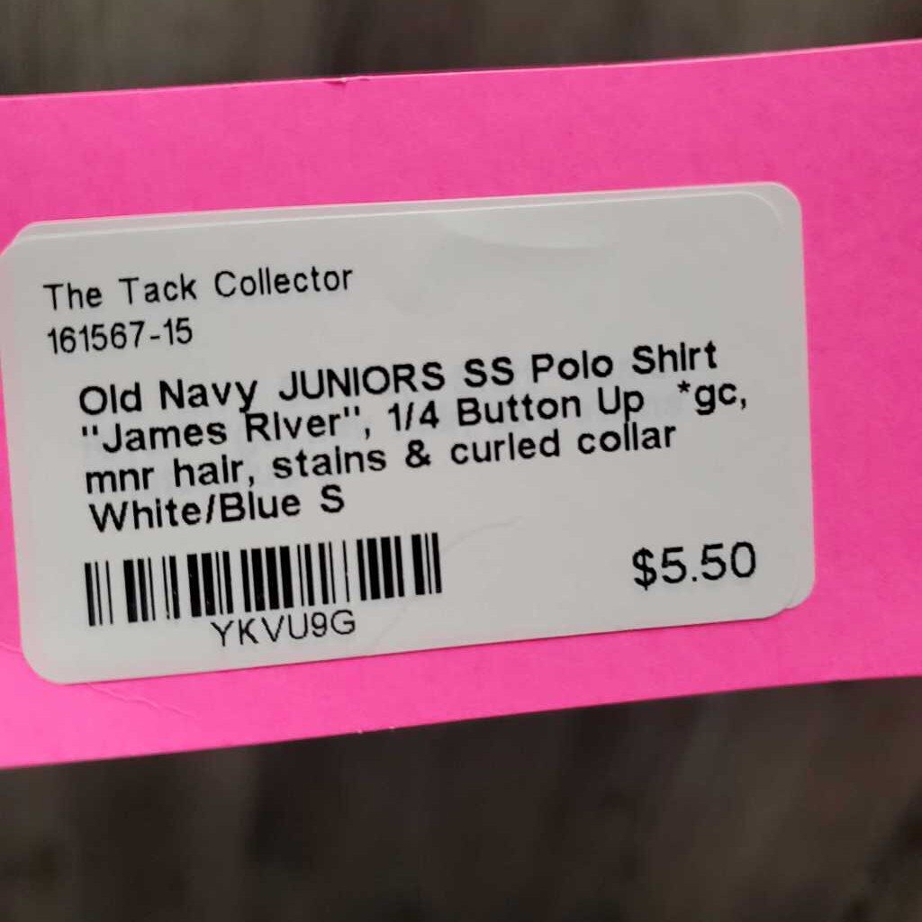 JUNIORS SS Polo Shirt "James River", 1/4 Button Up *gc, mnr hair, stains & curled collar