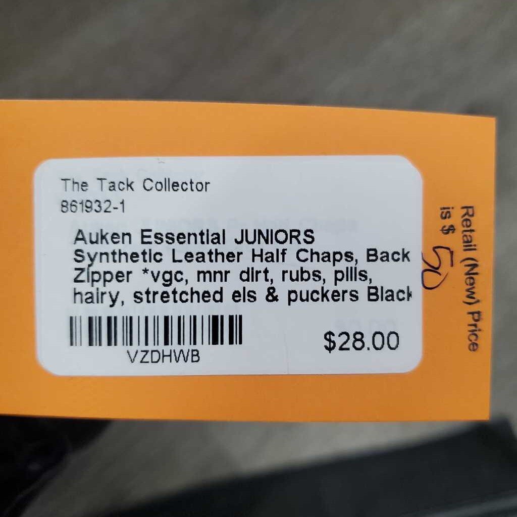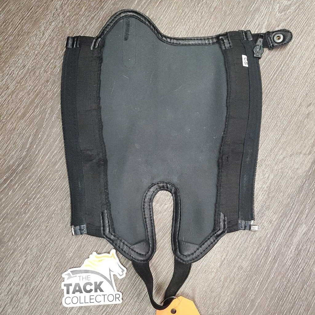 JUNIORS Synthetic Leather Half Chaps, Back Zipper *vgc, mnr dirt, rubs, pills, hairy, stretched els & puckers