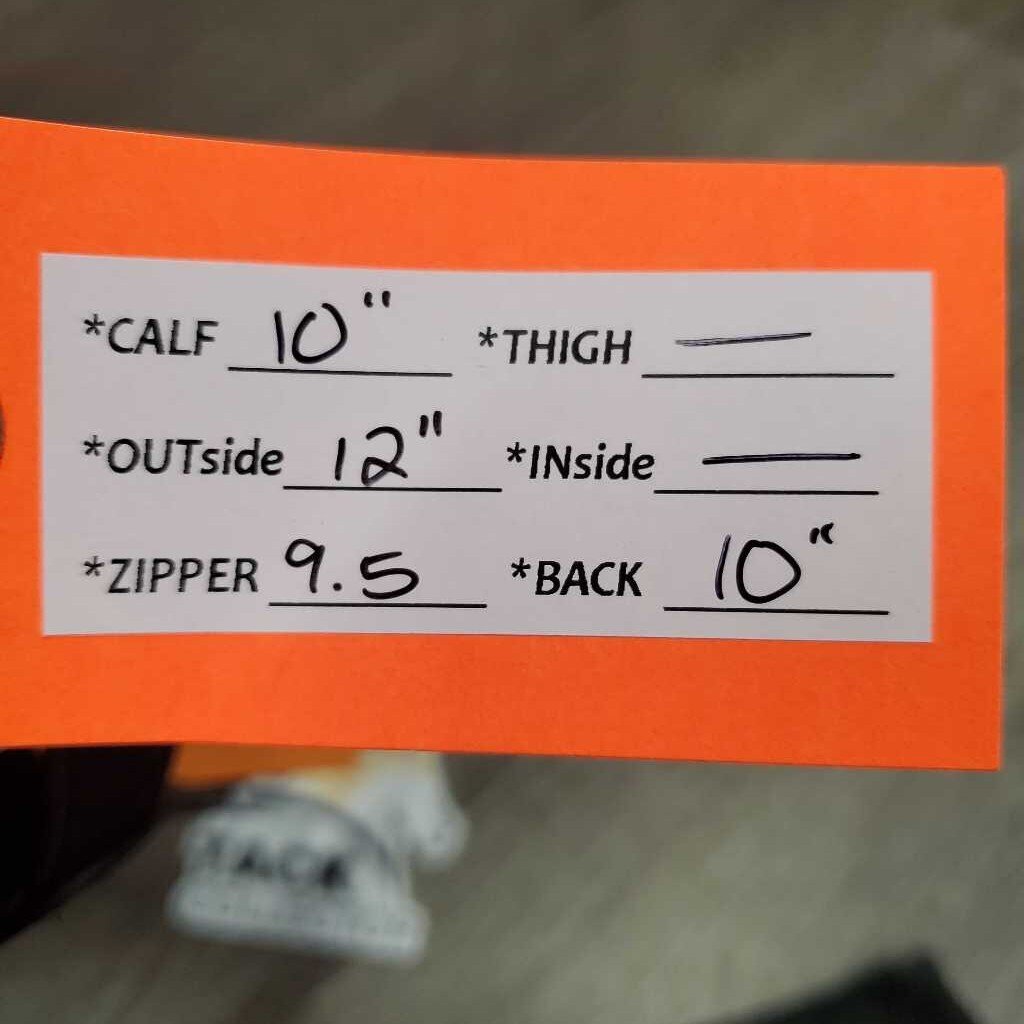 Calf: 10", Outside: 12", Zipper: 9.5", Back: 10" Stylish kids’ half chap combines fancy detailing with the durability of synthetic fabric to accommodate everyday lessons as well as classes at a schooling show. Crafted with breathable and easy-to-clean polyurethane and complete with a wide elastic panel for a closer fit.