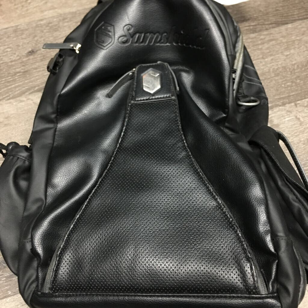Leather-Nylon Groom "Icon" Backpack *xc/vgc, clean, faded seams, mnr dirt, hair, rubs, threads, logo scuffs