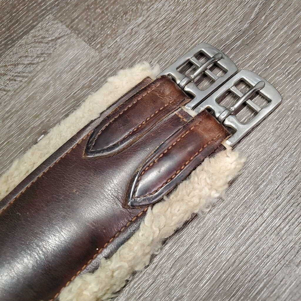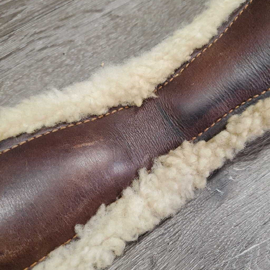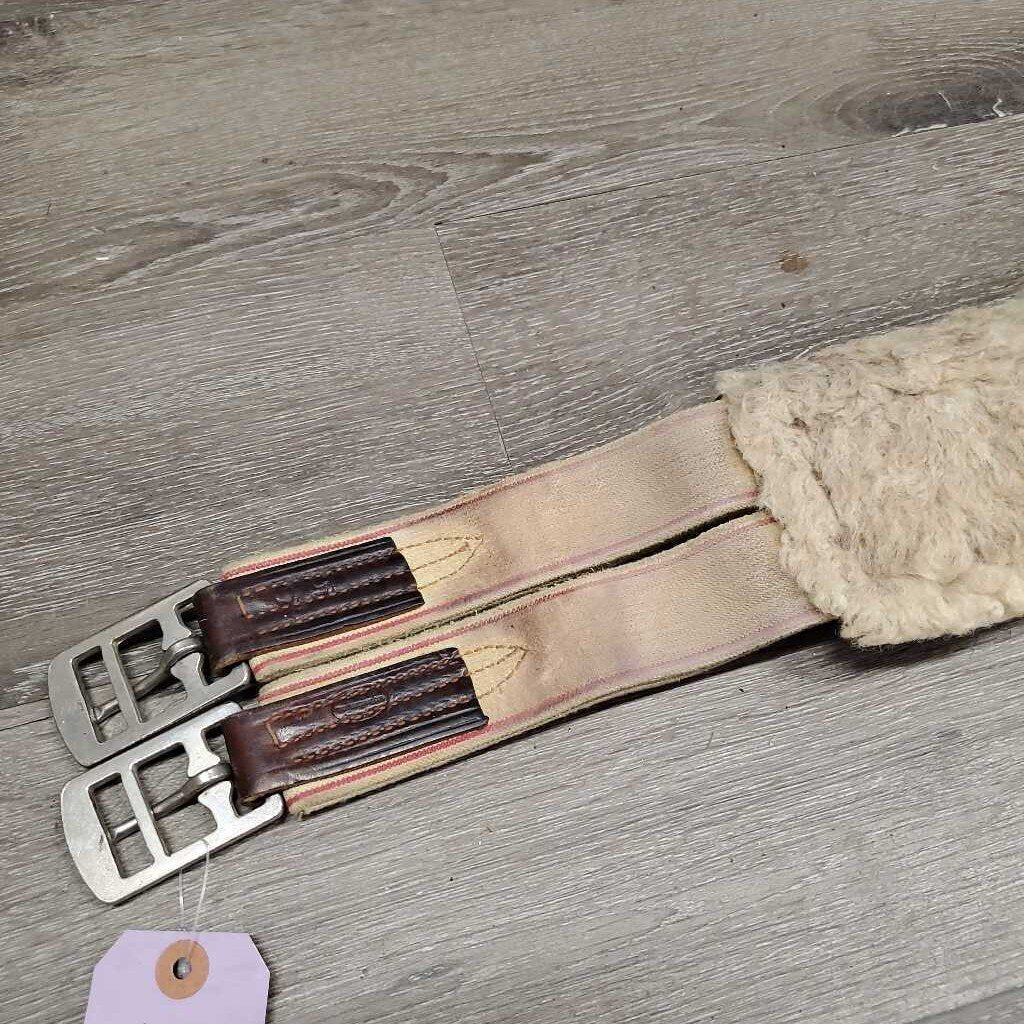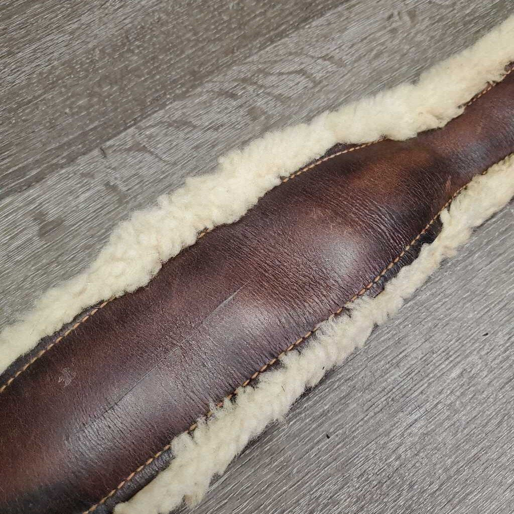 Leather Sheepkin Lined Girth, els *gc/fair, bent/hollow spot, clumpy, clean, rubs, stains