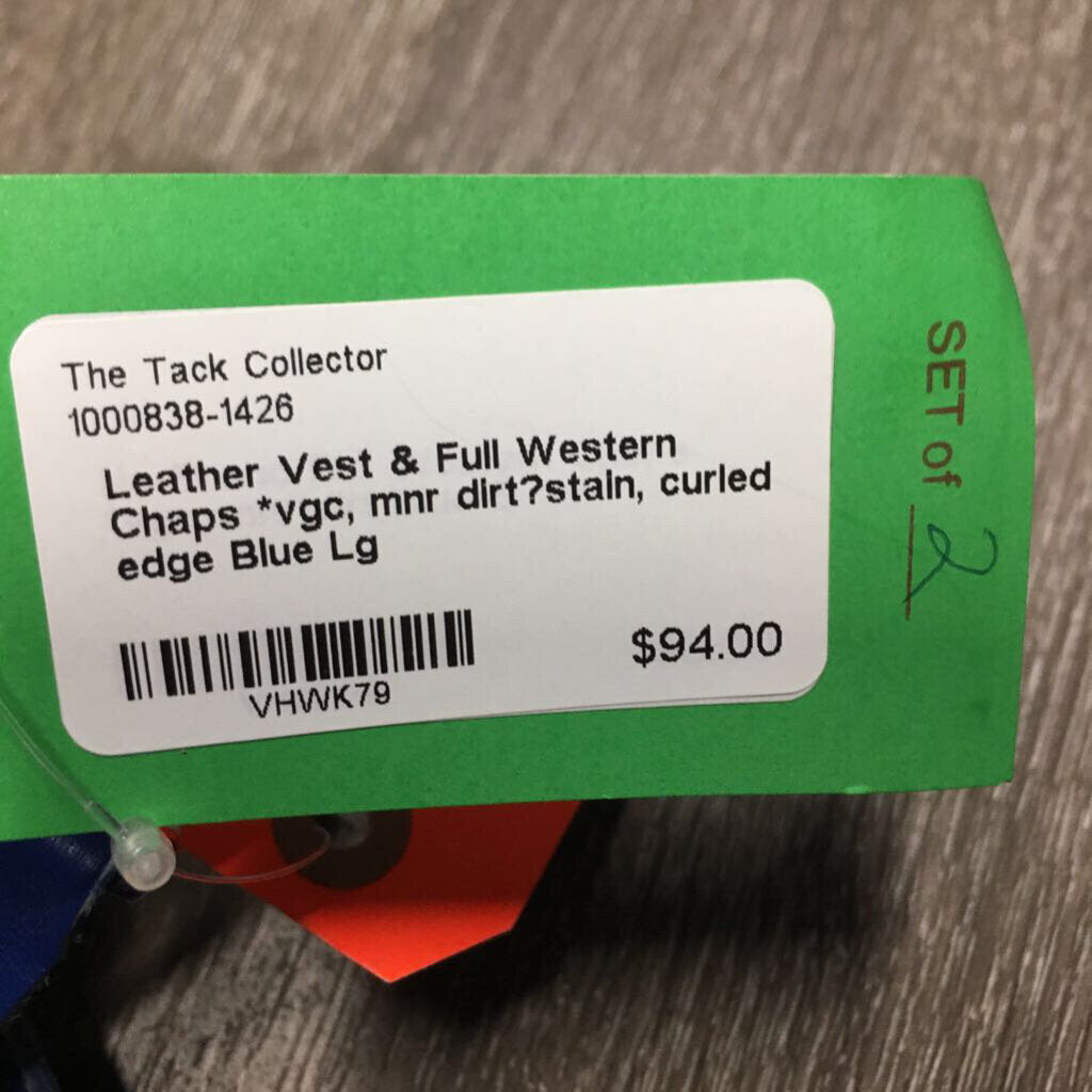 Leather Vest & Full Western Chaps *vgc, mnr dirt?stain, curled edge