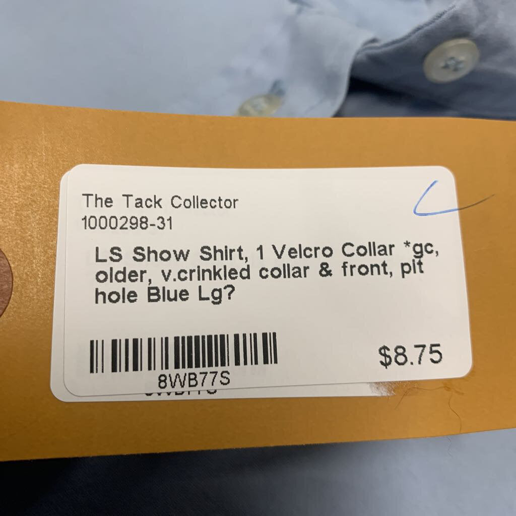 LS Show Shirt, 1 Velcro Collar *gc, older, v.crinkled collar & front, pit hole