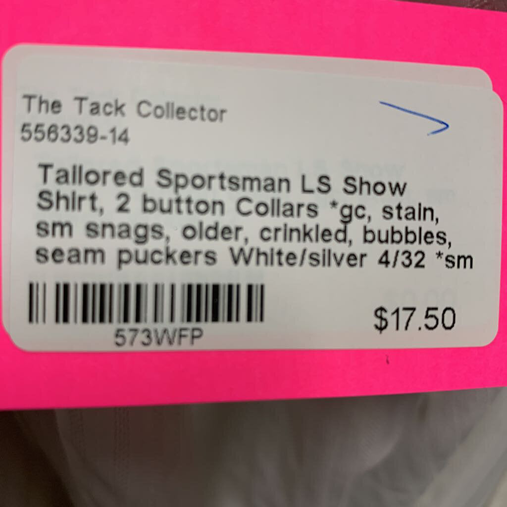 LS Show Shirt, 2 button Collars *gc, stain, sm snags, older, crinkled, bubbles, seam puckers