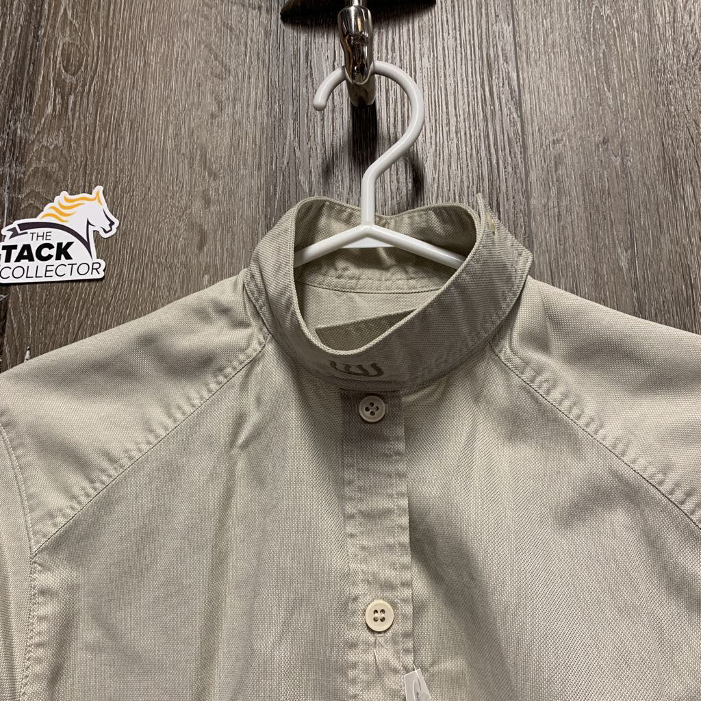 LS Show Shirt, attached button collar *fair, clean, older, seam puckers, stained, undone seam stitching