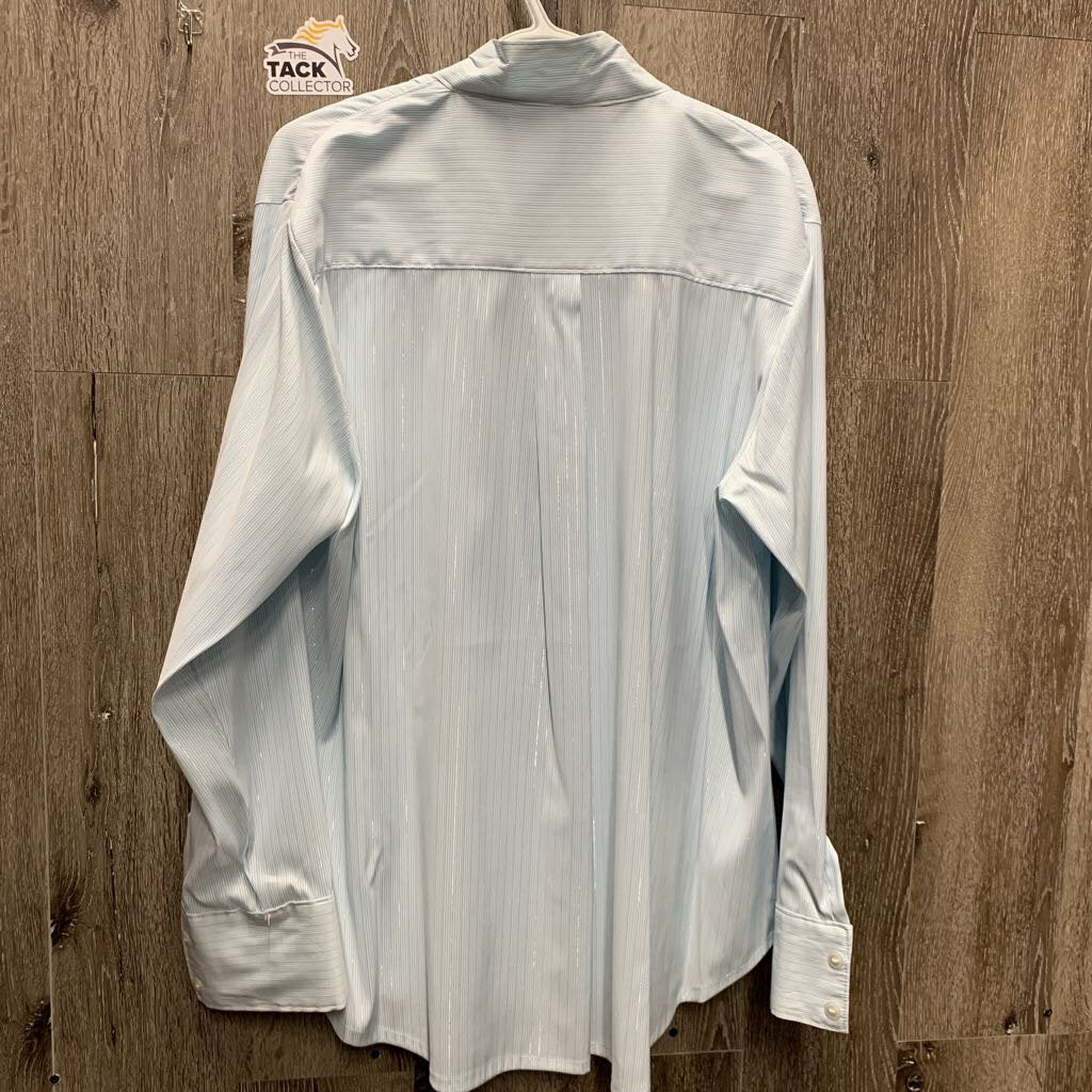LS Show Shirt, attached Button Collar *gc, older, seam puckers, threads, crinkled collar