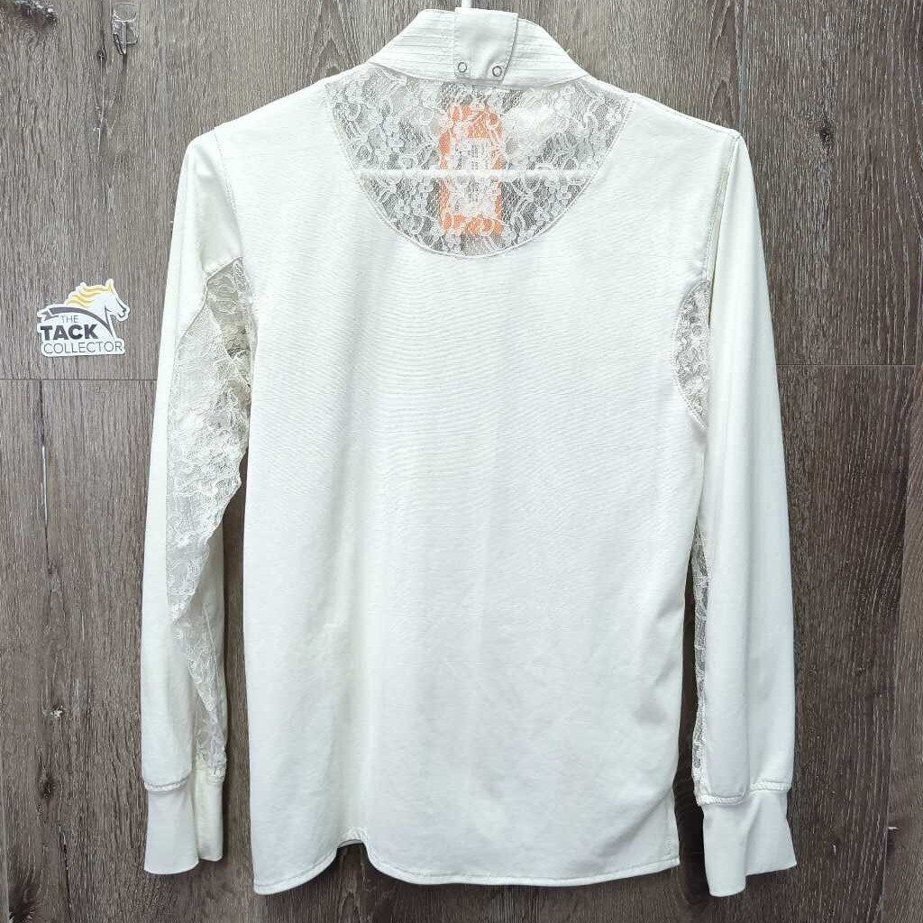 LS Show Shirt, attached snap collar, Snaps, Lacey *gc, clean, pit, crinkled, mnr snags