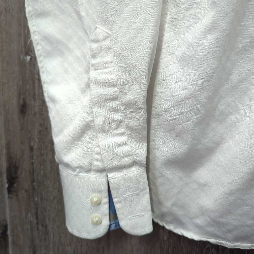 LS Show Shirt *gc, No Collar, seam puckers, older