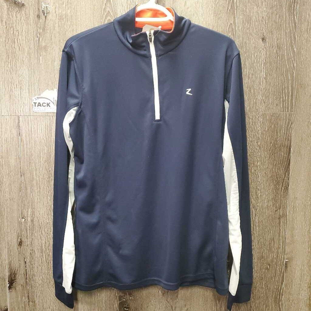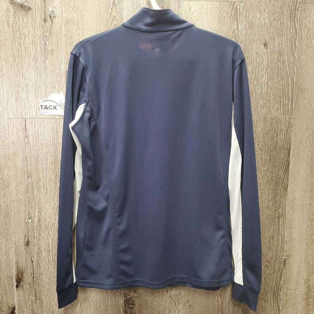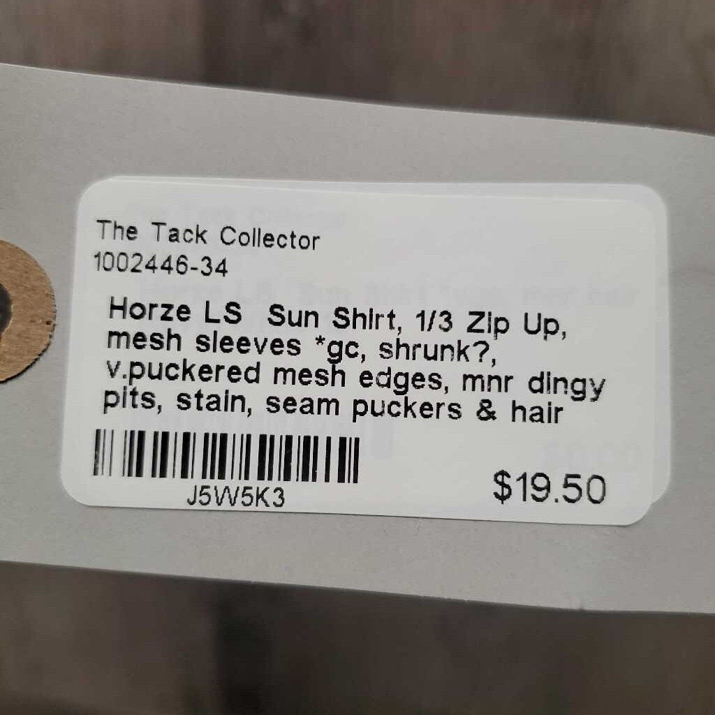 LS Sun Shirt, 1/3 Zip Up, mesh sleeves *gc, shrunk?, v.puckered mesh edges, mnr dingy pits, stain, seam puckers & hair