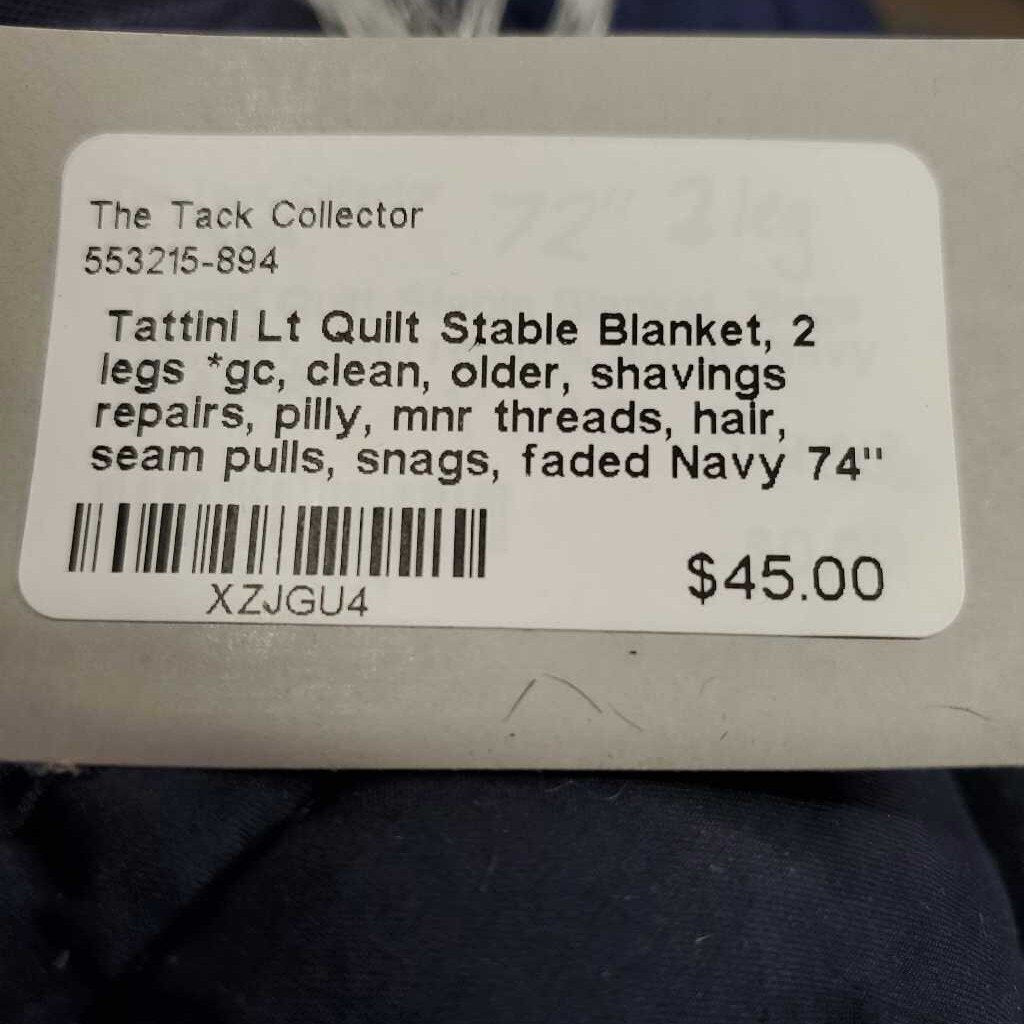 Lt Quilt Stable Blanket, 2 legs *gc, clean, older, shavings repairs, pilly, mnr threads, hair, seam pulls, snags, faded