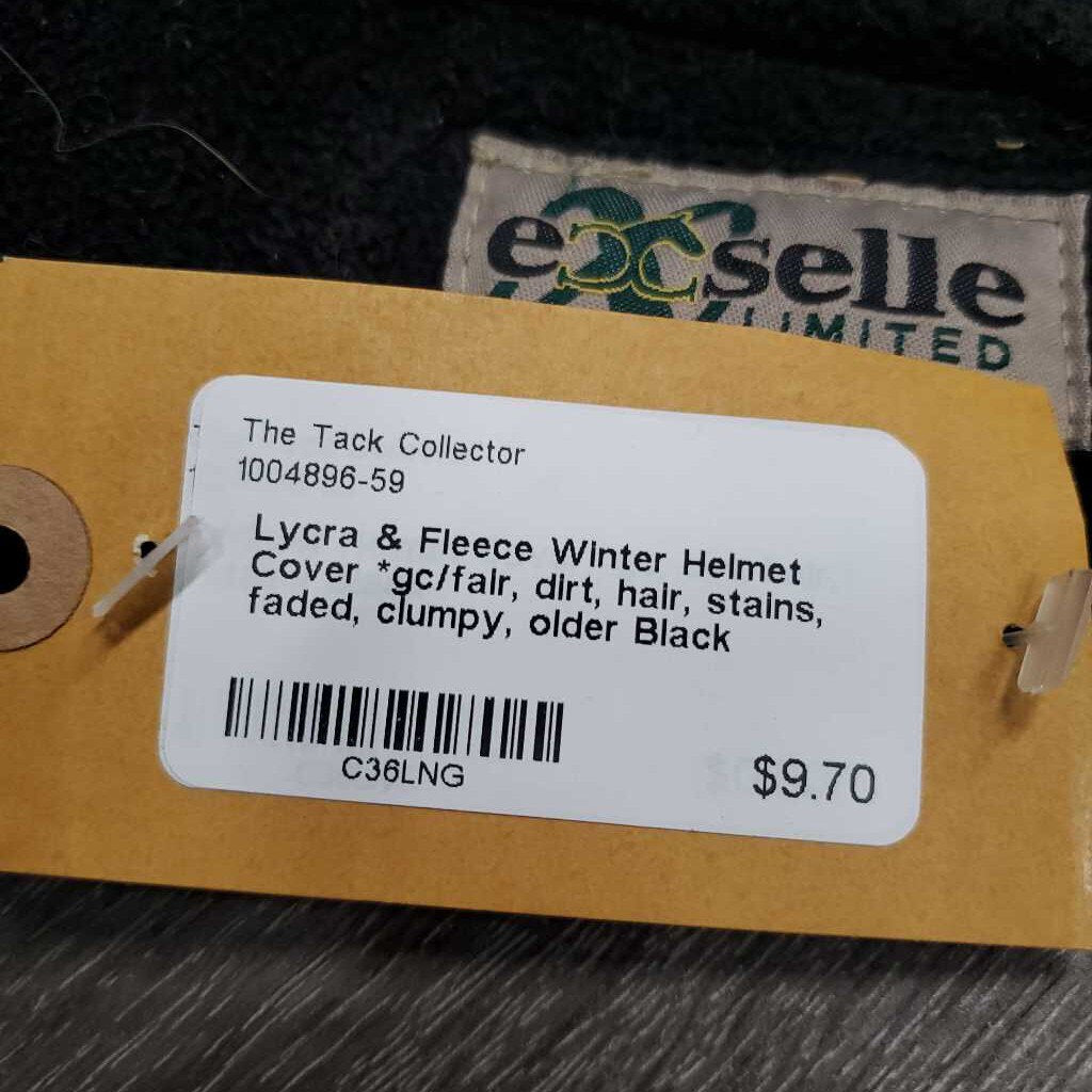 Lycra & Fleece Winter Helmet Cover *gc/fair, dirt, hair, stains, faded, clumpy, older