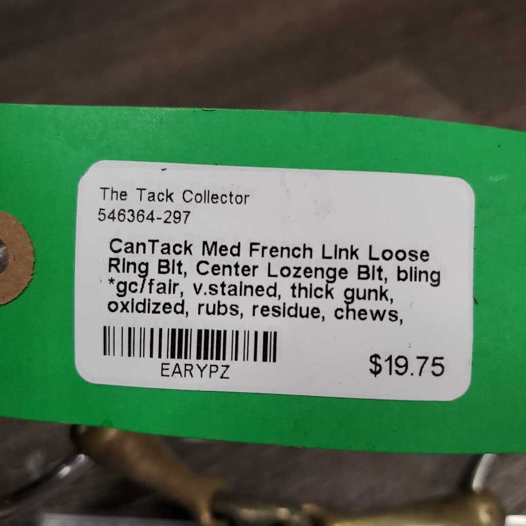 Med French Link Loose Ring Bit, Center Lozenge Bit, bling *gc/fair, v.stained, thick gunk, oxidized, rubs, residue, chews, rough