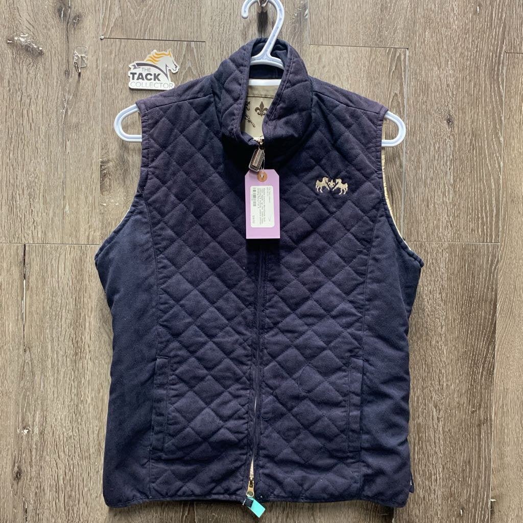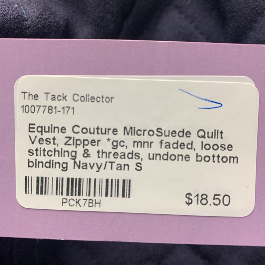 MicroSuede Quilt Vest, Zipper *gc, mnr faded, loose stitching & threads, undone bottom binding