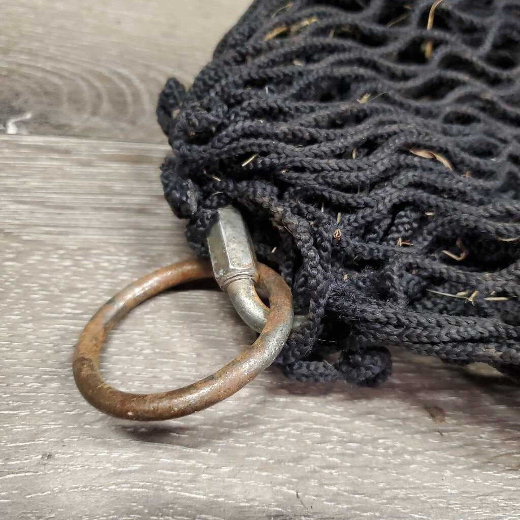 Mini (.5") holes Fine Nylon String Slow Feed Hay Net, Trailer Bag? *gc, dirty, faded, repaired, rubs, frays, rust