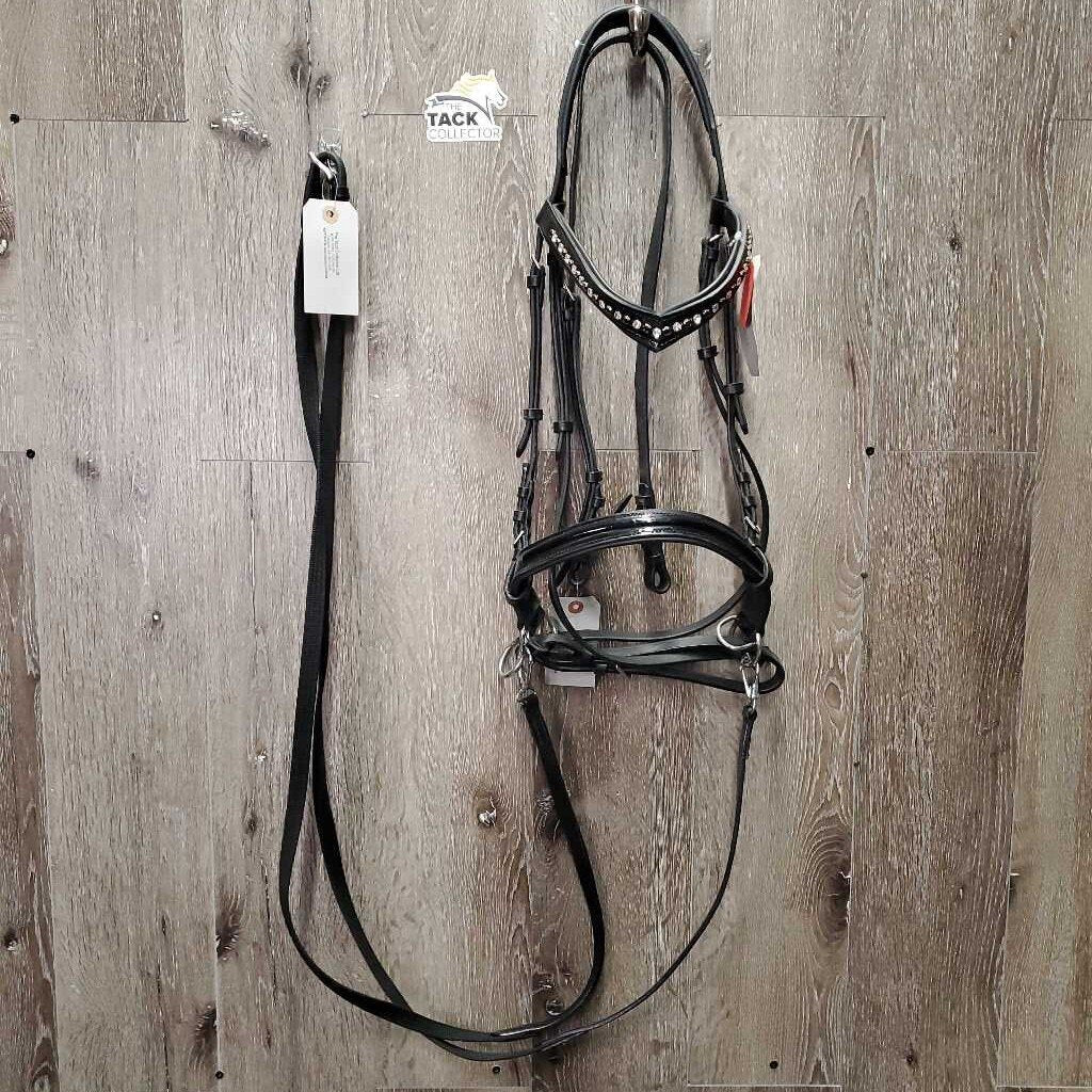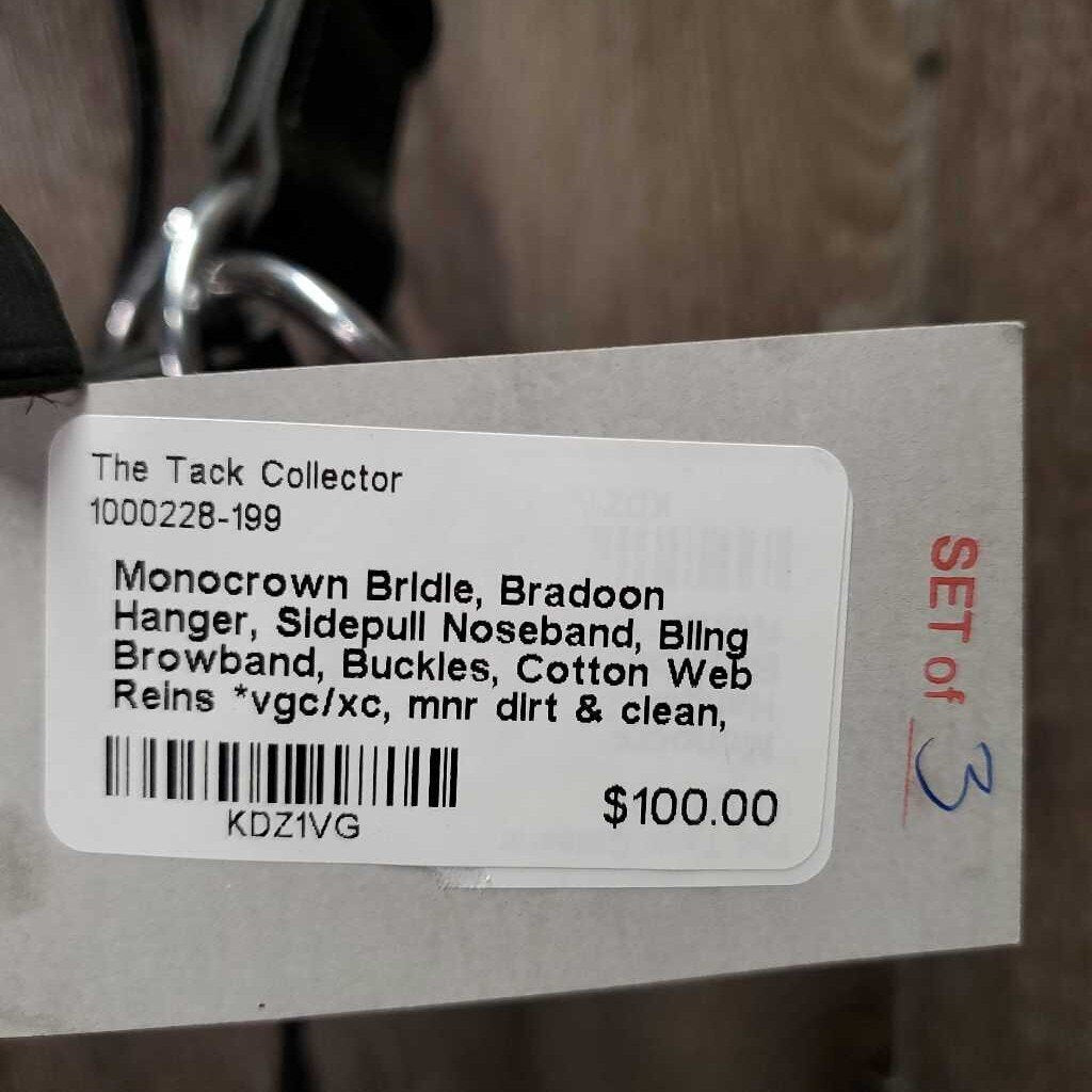 Monocrown Bridle, Bradoon Hanger, Sidepull Noseband, Bling Browband, Buckles, Cotton Web Reins *vgc/xc, mnr dirt & clean