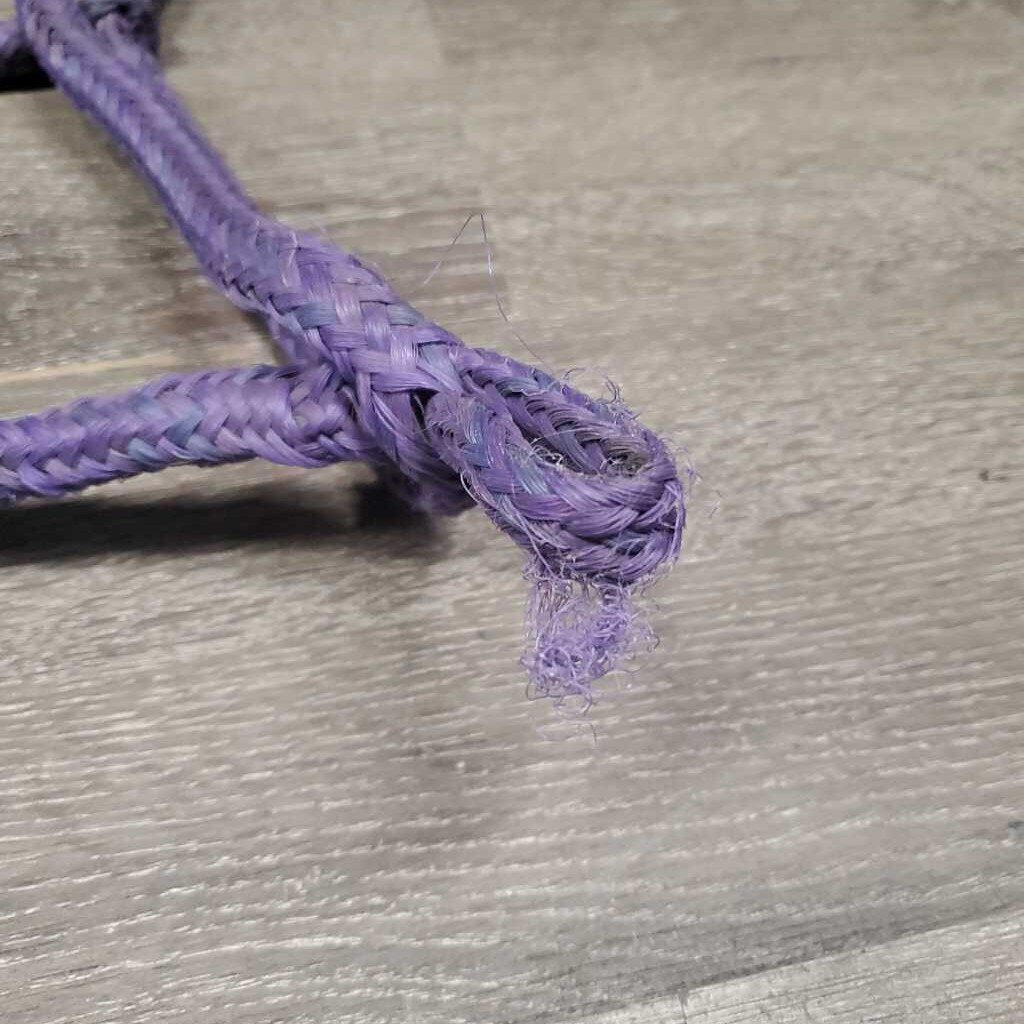 Narrow Round Hollow Nylon Rope Halter *gc/fair, dirty, broken strings, frays, stains, faded, snags