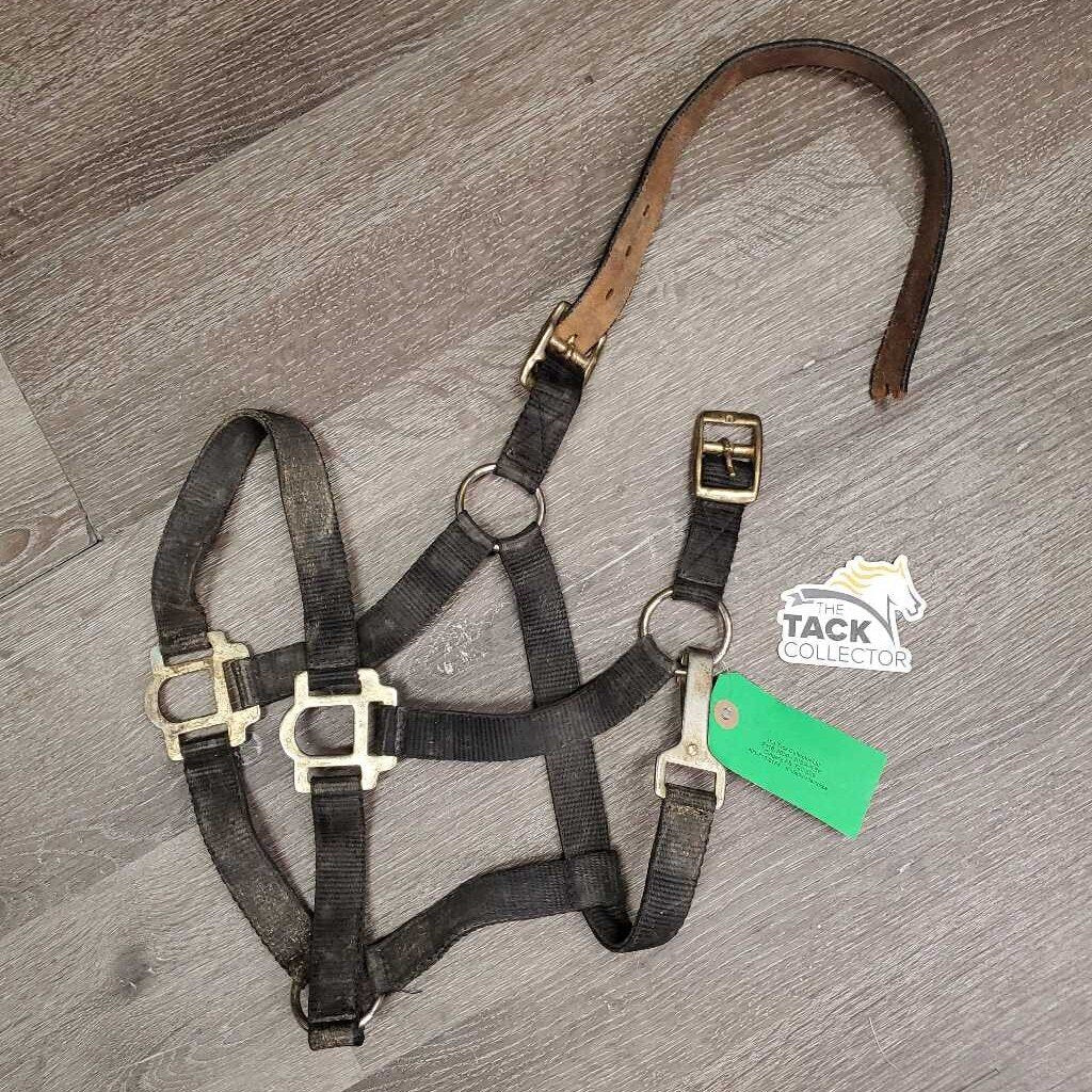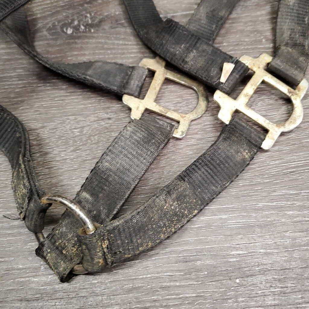 Nylon Breakaway Halter, leather crown *gc, dirt, faded, stained, broken crown