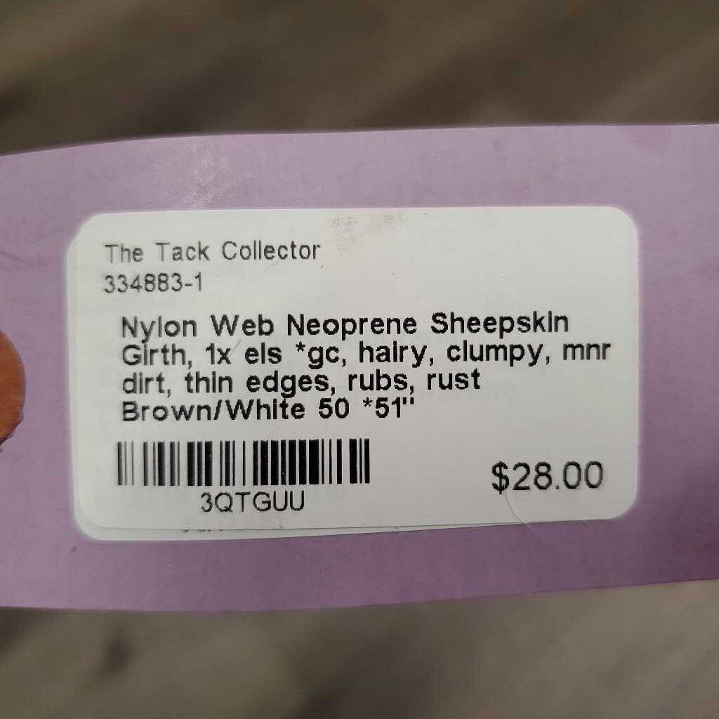 Nylon Web Neoprene Sheepskin Girth, 1x els *gc, hairy, clumpy, mnr dirt, thin edges, rubs, rust