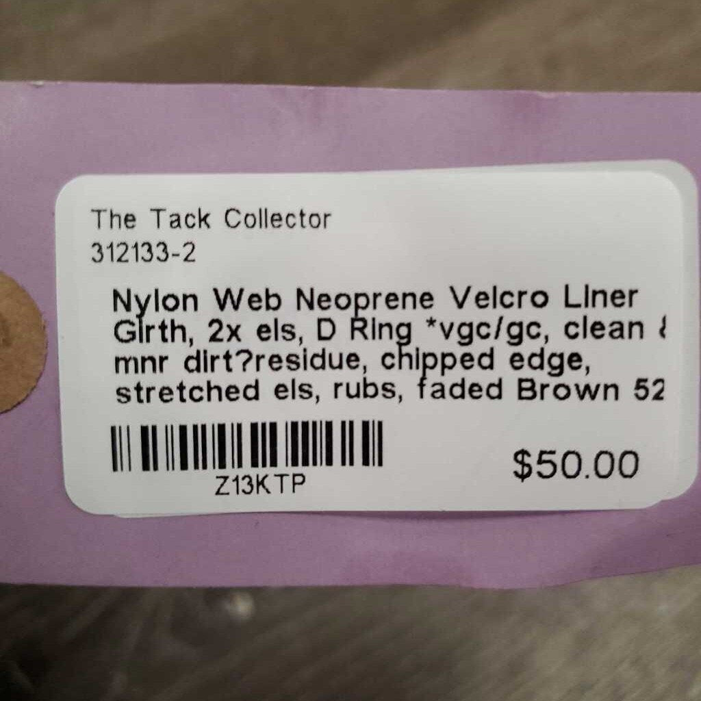 Nylon Web Neoprene Velcro Liner Girth, 2x els, D Ring *vgc/gc, clean & mnr dirt?residue, chipped edge, stretched els, rubs, faded