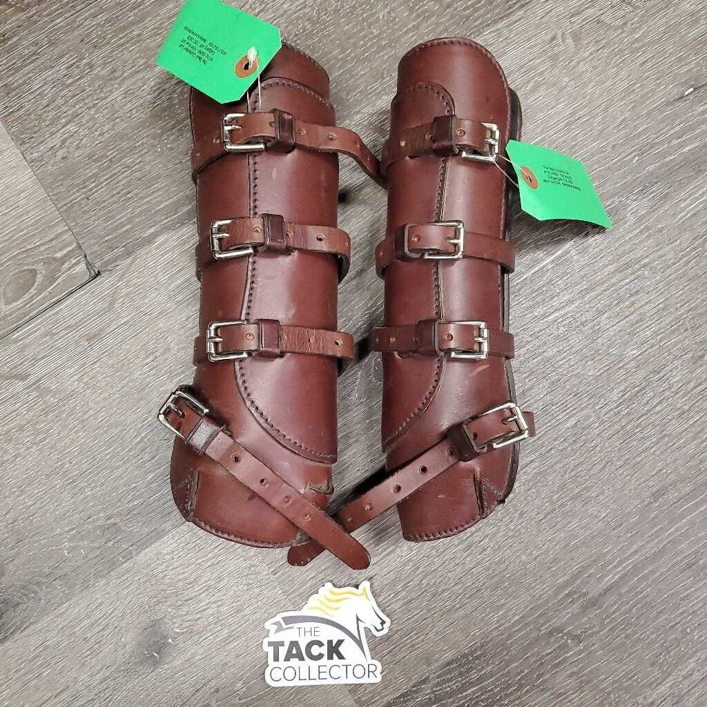 Open Front Leather Boots, buckles *gc, clean, dusty & dirty, older, stains