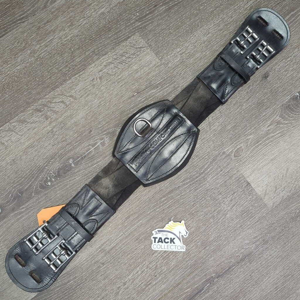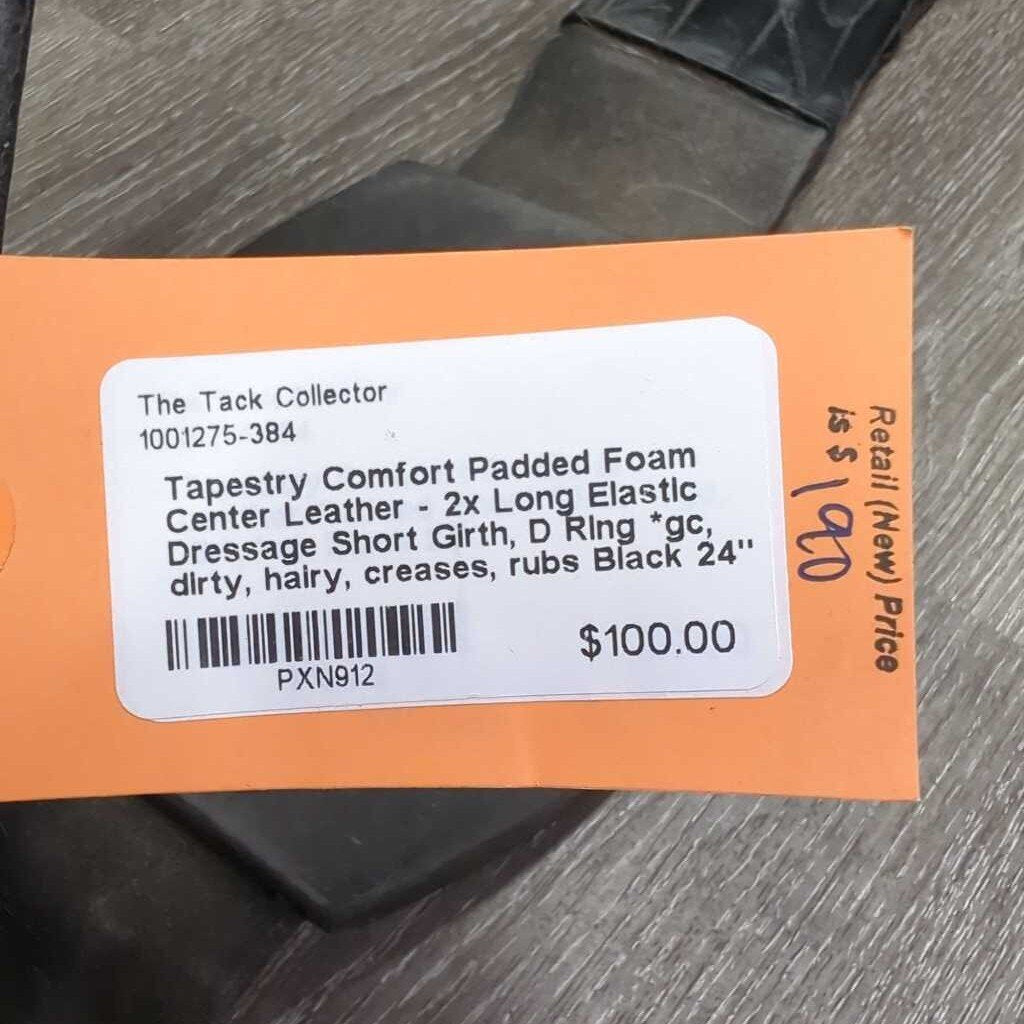 Padded Foam Center Leather - 2x Long Elastic Dressage Short Girth, D Ring *gc, dirty, hairy, creases, rubs