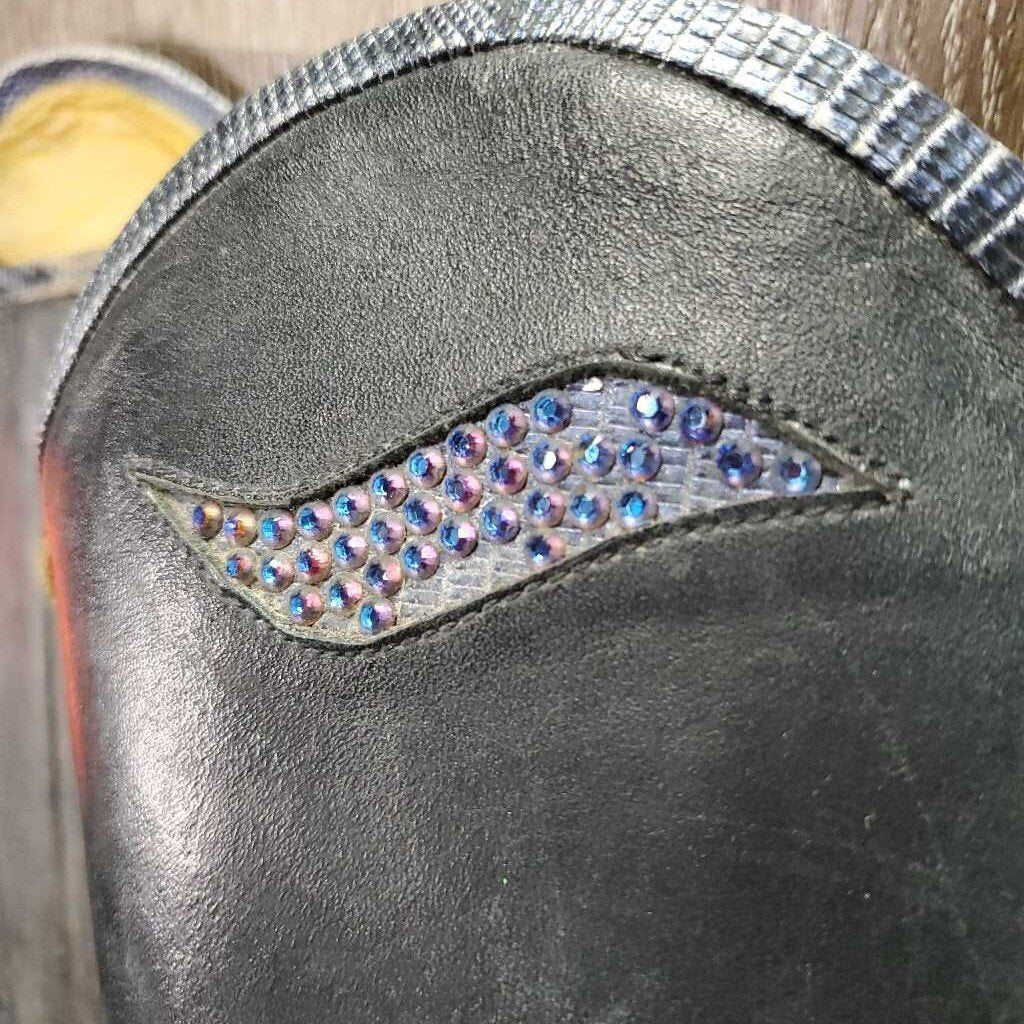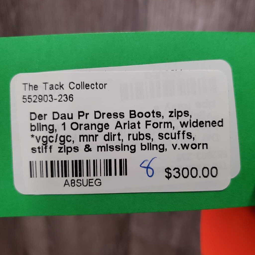 Pr Dress Boots, zips, bling, 1 Orange Ariat Form, widened *vgc/gc, mnr dirt, rubs, scuffs, stiff zips & missing bling, v.worn heels