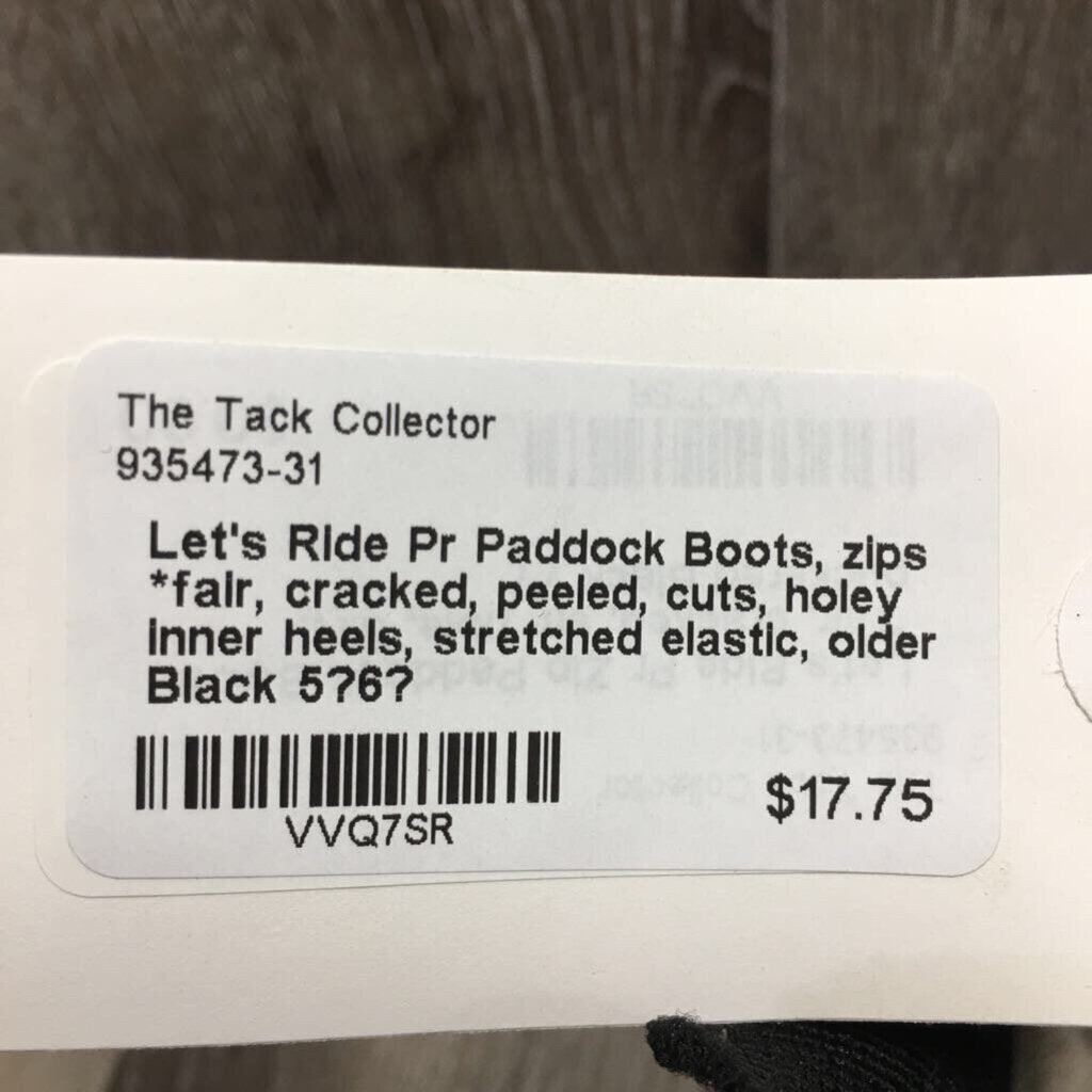 Pr Paddock Boots, zips *fair, cracked, peeled, cuts, holey inner heels, stretched elastic, older