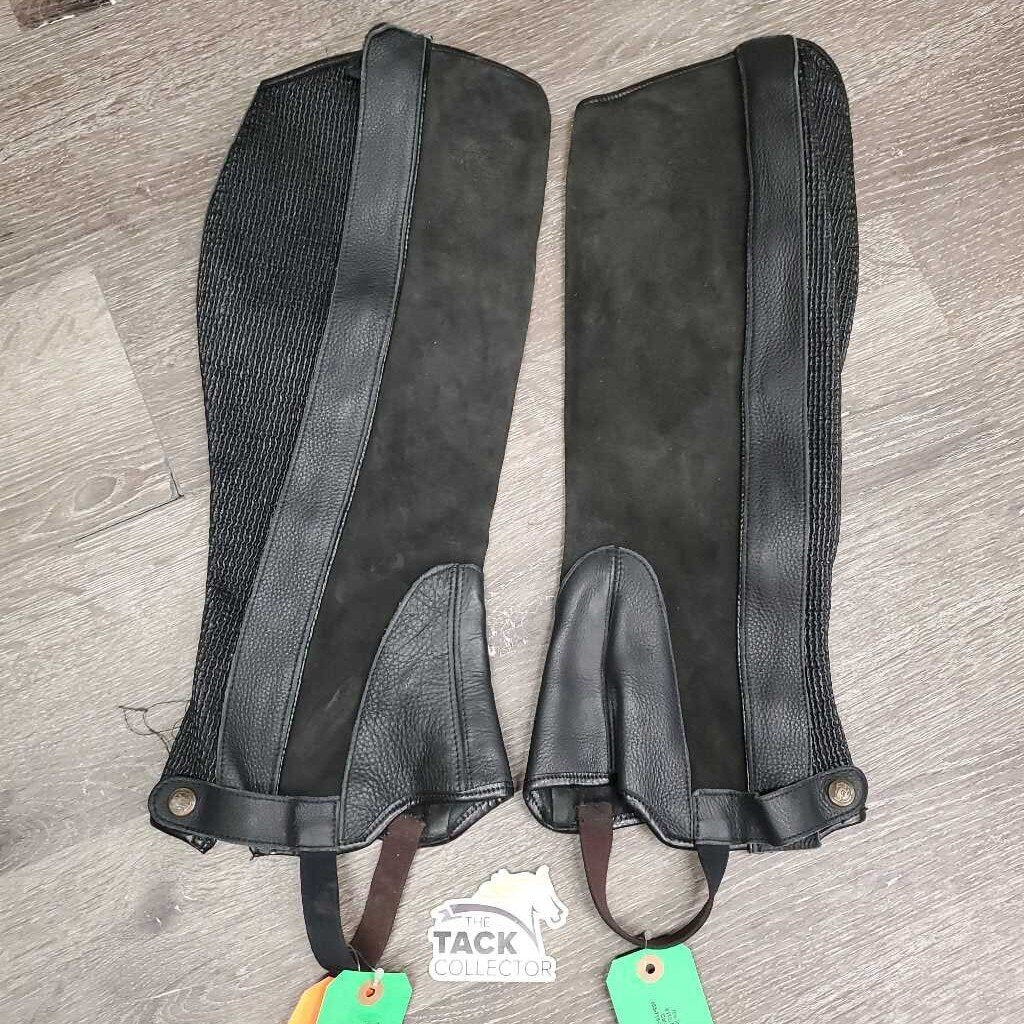 Pr Soft Suede & Leather Half Chaps *gc, clean, rubs, frayed edges, threads, faded, older
