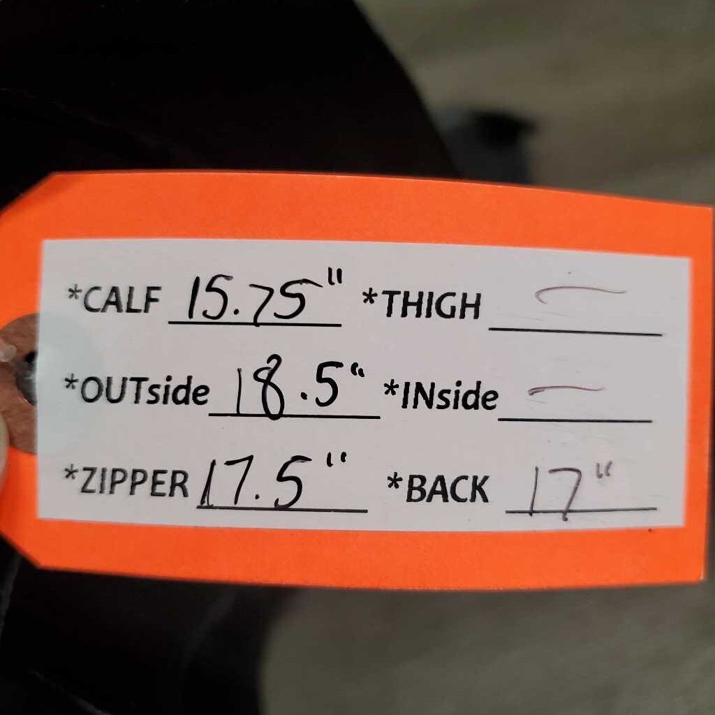 Calf 15.75", Outside 18.5", Zipper 17.5", Back 17"
