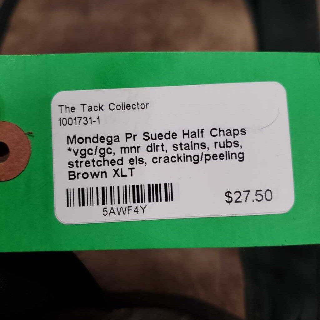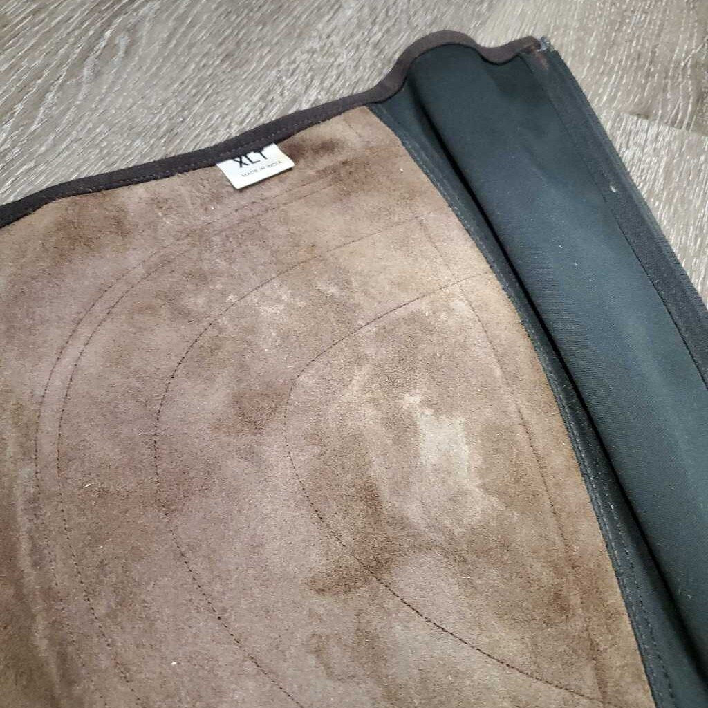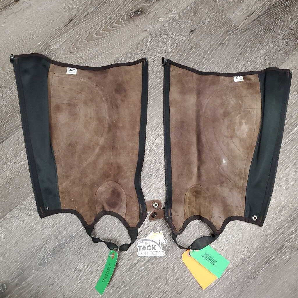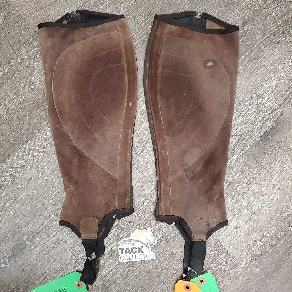 Pr Suede Half Chaps *vgc/gc, mnr dirt, stains, rubs, stretched els, cracking/peeling