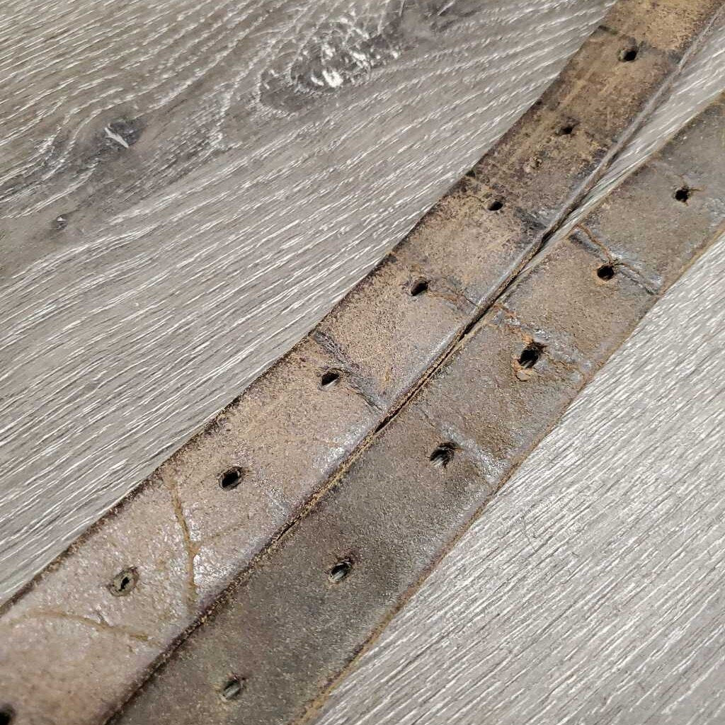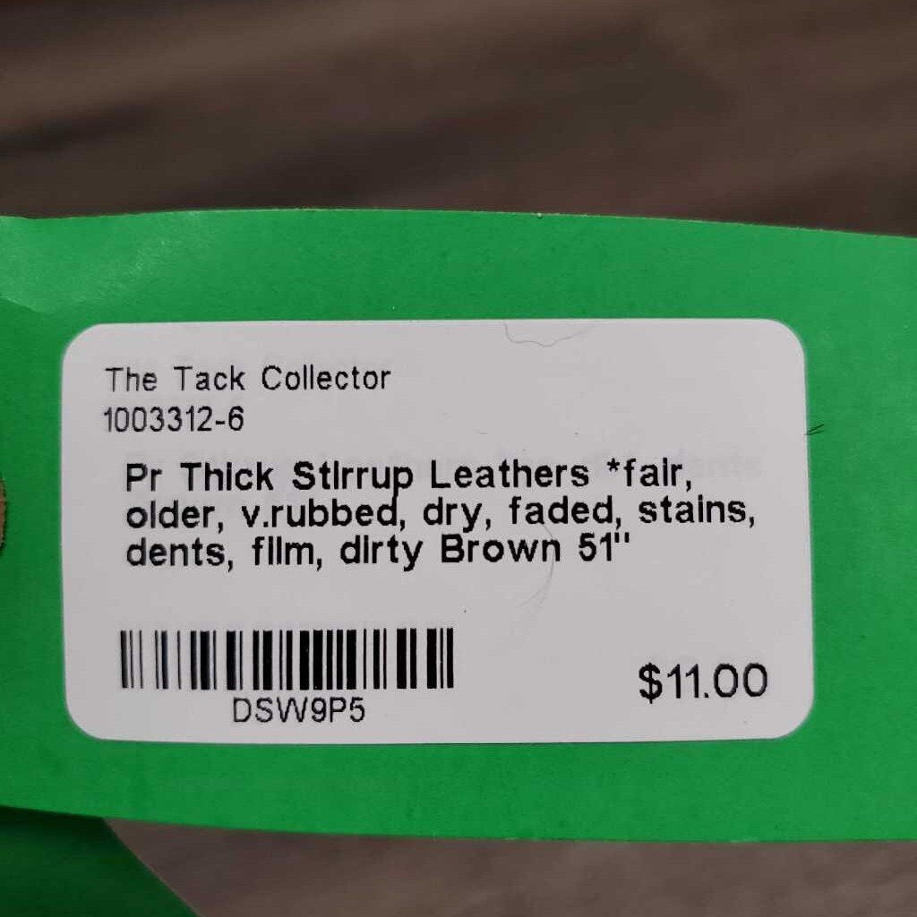 Pr Thick Stirrup Leathers *fair, older, v.rubbed, dry, faded, stains, dents, film, dirty