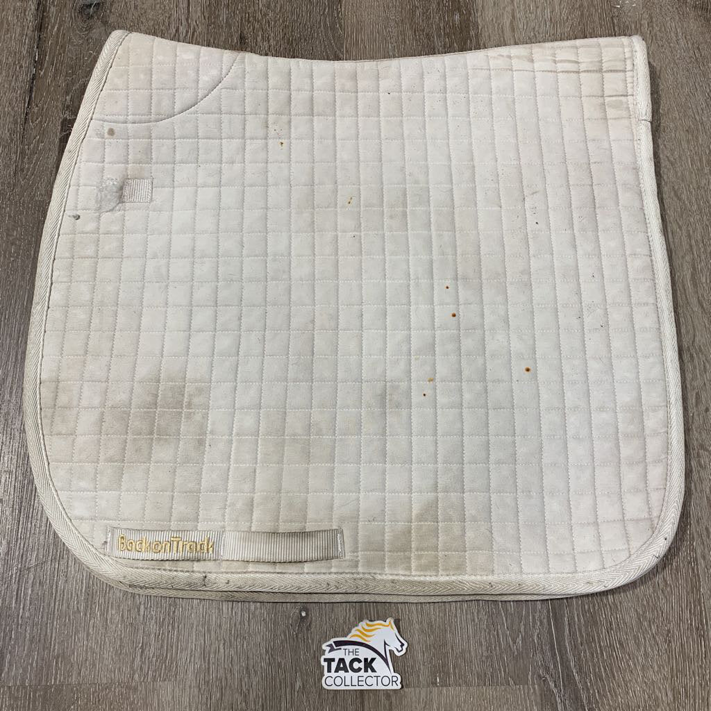 Quilted Dressage Saddle Pad *gc, hair, stained, dingy, threads, pills, rubbed binding, cut tabs, clumpy underside