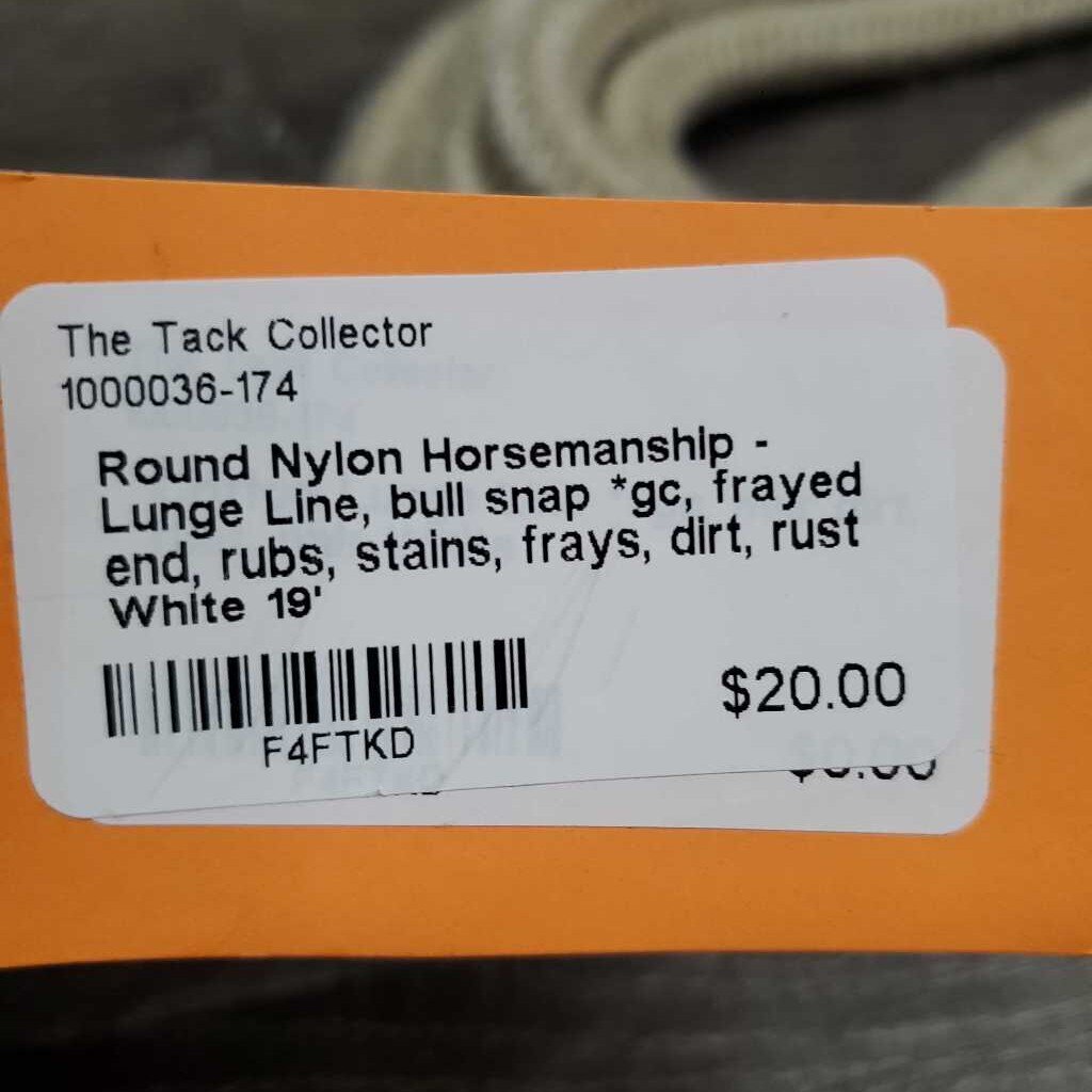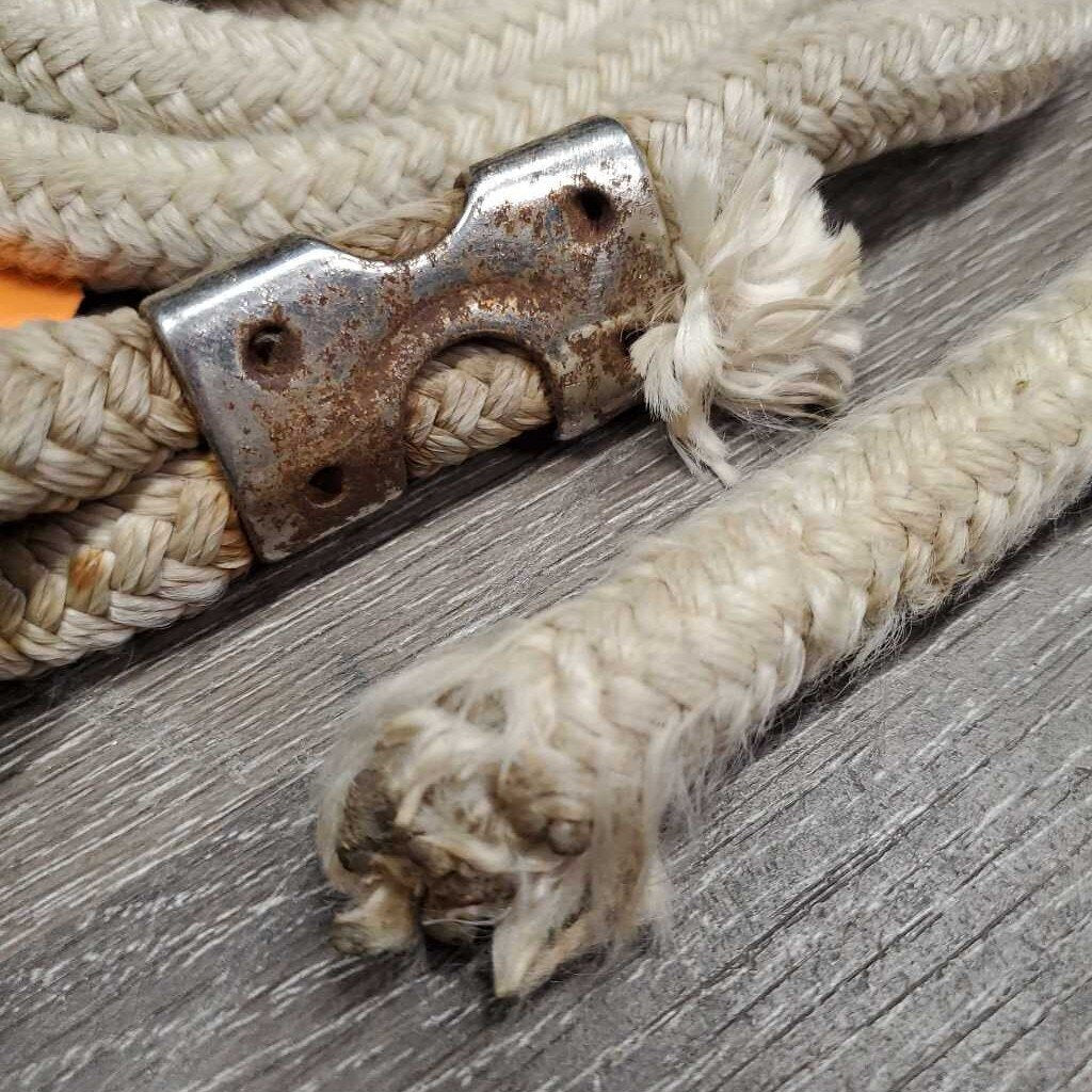Round Nylon Horsemanship - Lunge Line, bull snap *gc, frayed end, rubs, stains, frays, dirt, rust