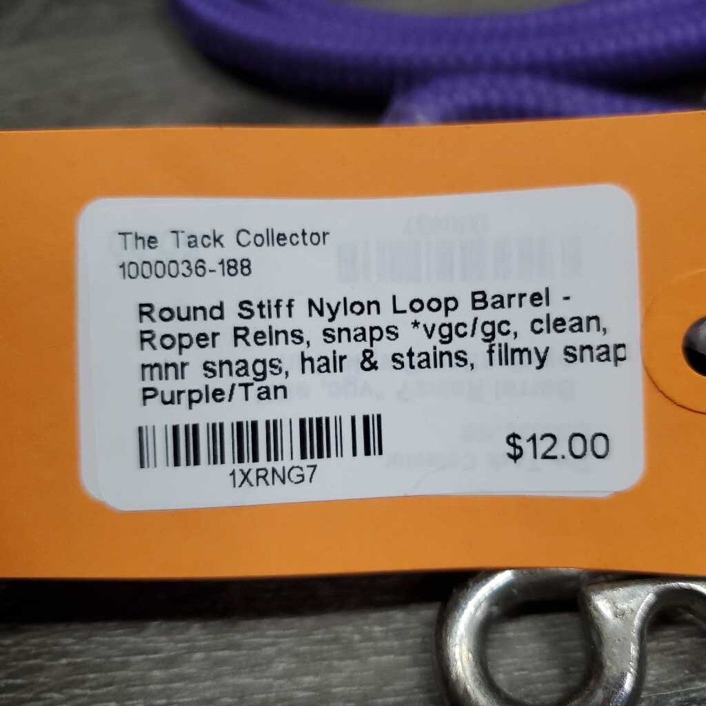 Round Stiff Nylon Loop Barrel - Roper Reins, snaps *vgc/gc, clean, mnr snags, hair & stains, filmy snap