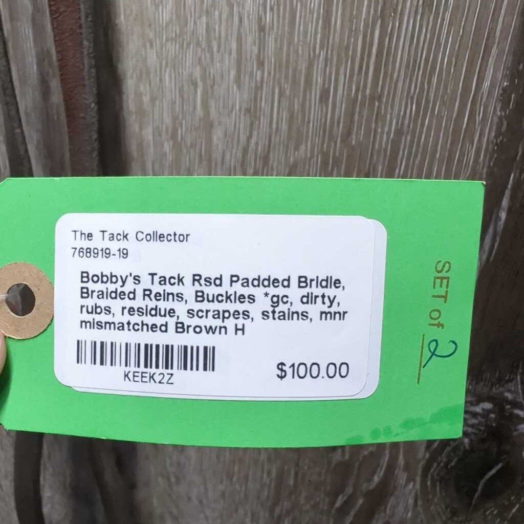 Rsd Padded Bridle, Braided Reins, Buckles *gc, dirty, rubs, residue, scrapes, stains, mnr mismatched